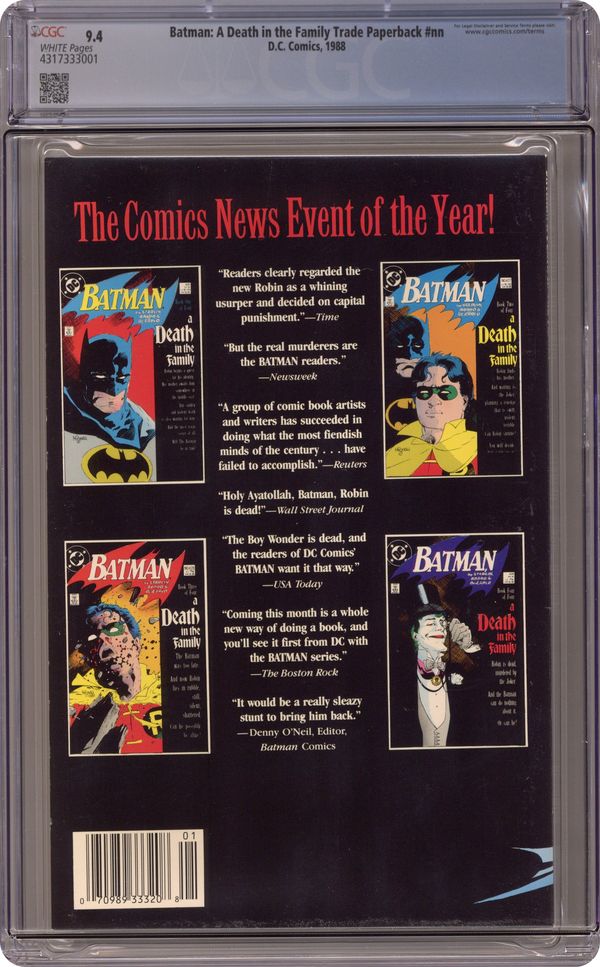 In defiance of Batman, Jason Todd, the second Boy Wonder, embarks on a quest to find his mother, but meets the Joker... and his final fate!