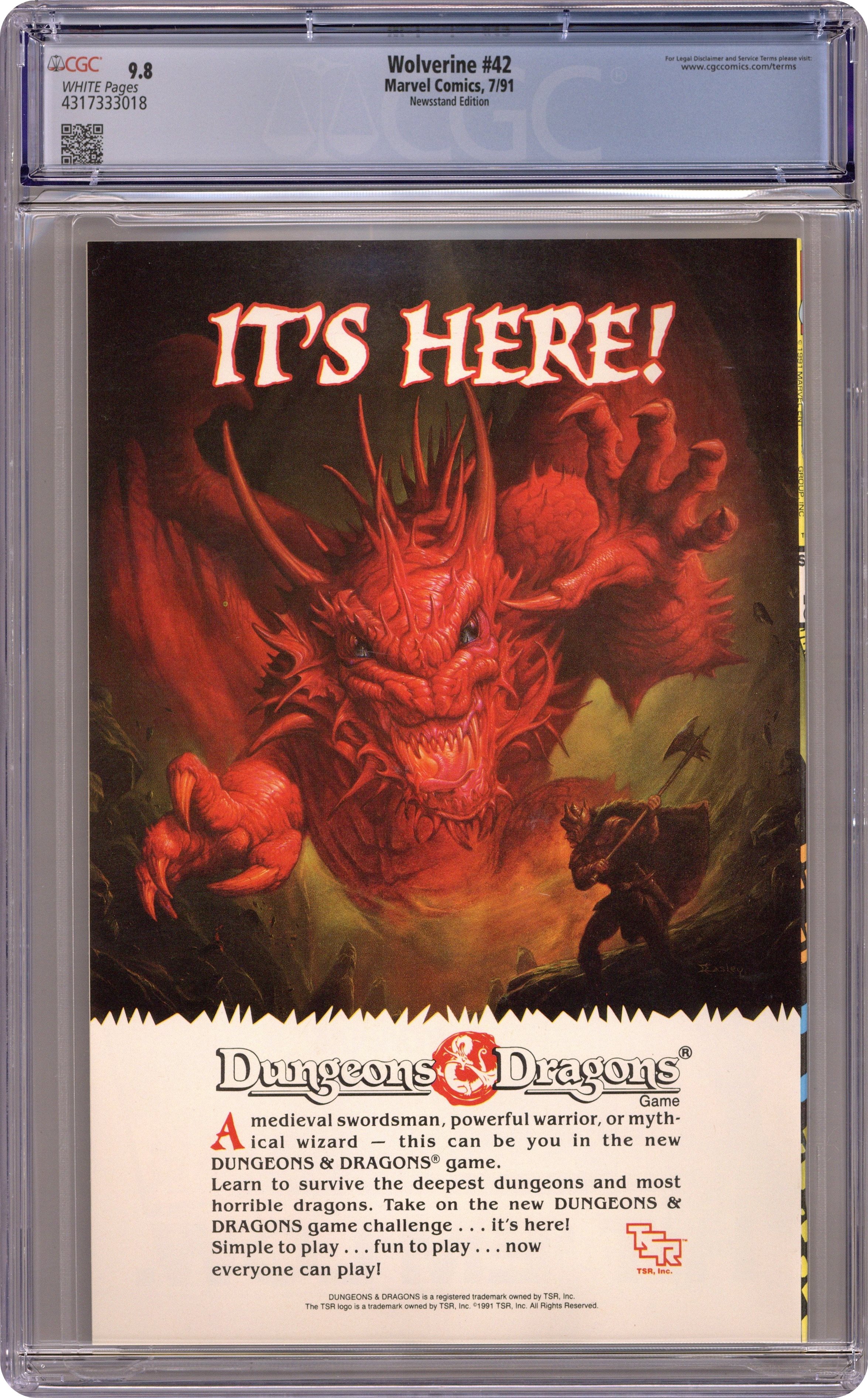 1st printing. Newsstand Edition. "Papa was a Rolling Stone!" Guest-starring Guest-starring Cable, Jubilee, Forge and Nick Fury. Written by Larry Hama. Art by Marc Silvestri and Dan Green. As the battle escalates, the Morlock Tunnels continue to flood which threatens an unsuspecting city above. In order to save New York City, one of our cast members must make the ultimate sacrifice. 32 pages, FC Cover price $1.75. Grade: CGC 9.8 explanation of grade Condition: Used (collectible)