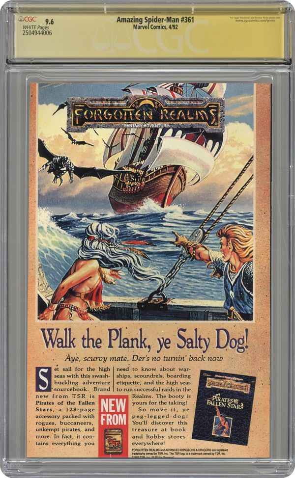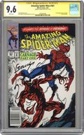 First Printing. Newsstand Edition. First (full) appearance of Carnage in "Savage Genesis!" Part 1 of 3. Script by David Michelinie. Pencils by Mark Bagley. Inks by Randy Emberlin. Cover by Mark Bagley and Randy Emberlin. Blood runs in the streets as a serial killer roams New York City! And as the web-slinger investigates the murders, he notices a very disturbing similarity to another killer's modus operandi! In a burned-out building in Brooklyn, the spectacular one comes face-to-face with his new homicidal foe...Carnage! Can the wall-crawler end Cletus Kasady's rampage in their very first encounter? Cameo appearances by Aunt May and Mary Jane Watson. Flashback cameo by Venom. (Note: This three-part story was reprinted in 2011 in the trade paperback: Spider-Man -- The Vengeance of Venom.) 36 pages, full color. $1.25 cover price. NOTE: Most of these were distributed with slight printer tears in the bottom edge of the cover. Cover price $1.25. Grade: CGC 9.6 explanation of grade Condition: Used (collectible)