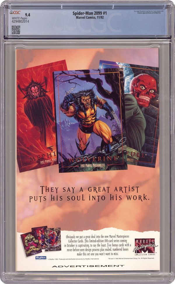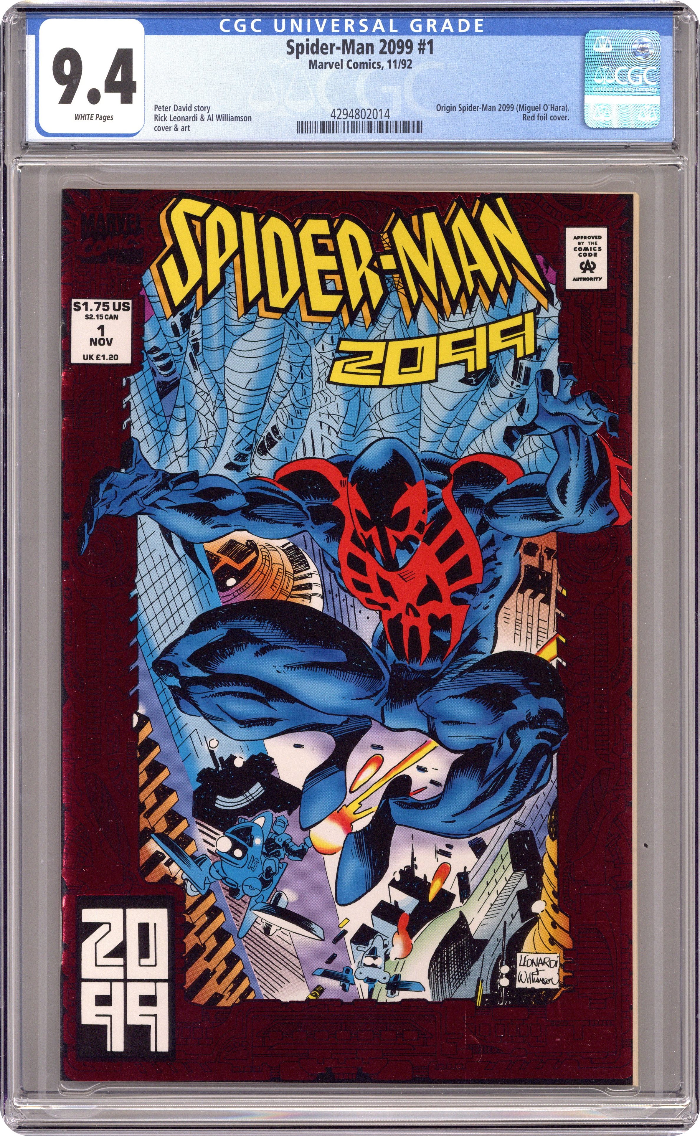 Direct Edition. Miguel O'Hara may be a genius, but he's not quick enough to keep from getting addicted to Rapture. So he experiments on himself, but the outcome isn't quite what he expected in this untitled tale. Script by Peter David, pencils by Rick Leonardi, inks by Al Williamson. Red foil stamped cover by Leonardi & Williamson. Cover price $1.75. Grade: CGC 9.4 explanation of grade Condition: Used (collectible)