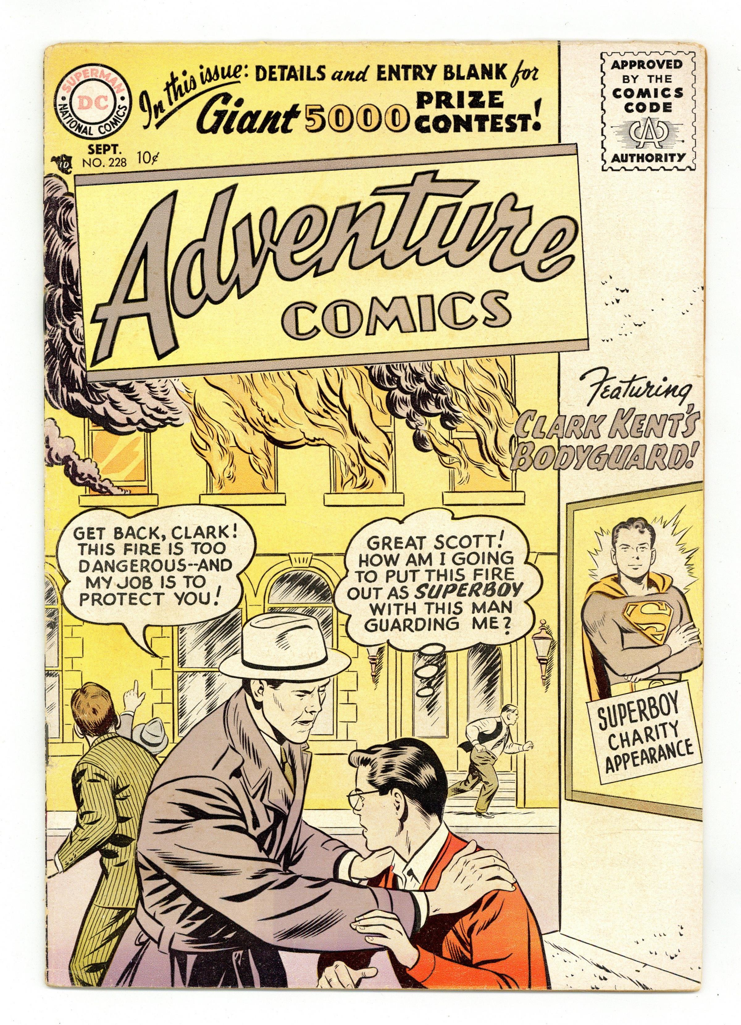 Cover pencils by Curt Swan, inks by Stan Kaye. Clark Kent's Bodyguard starring Superboy, script by Alvin Schwartz, art by John Sikela; Clark Kent is a witness for an accused thief; a bodyguard assigned to him makes it tough to be Superboy. Varsity Vic humor page by Henry Boltinoff. The Floating Hall of Fame starring Aquaman, script by Bob Haney, art by Ramona Fradon. This Business of Boxing article. The Ozark Archer starring Green Arrow, art by George Papp. 36 pages, Full Color. Cover price $0.10. Grade: GD/VG 3.0 explanation of grade Condition: Used (collectible)