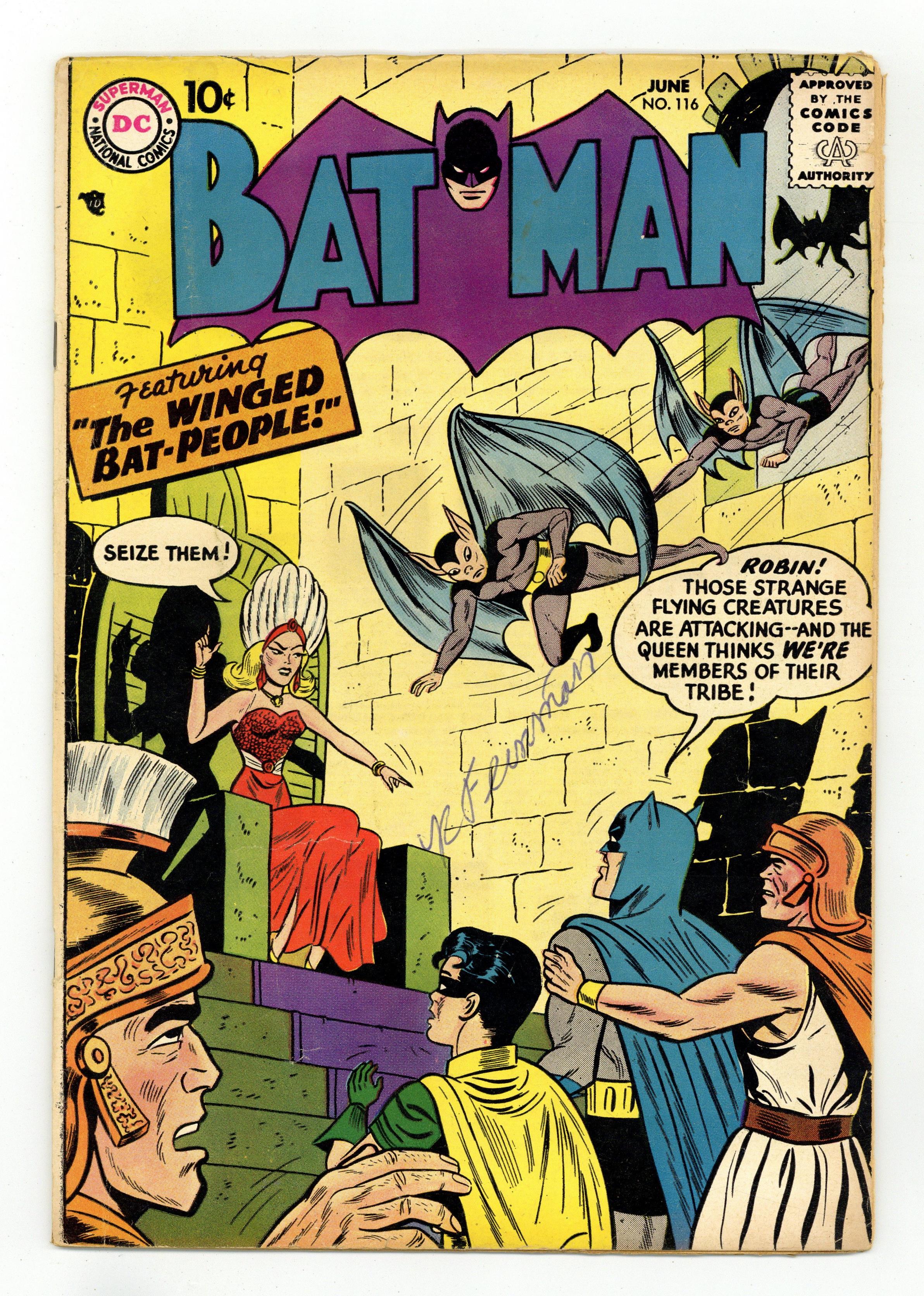 Cover by Sheldon Moldoff. "The City of Ancient Heroes," script by Bill Finger, pencils by Sheldon Moldoff (as Bob Kane), inks by Charles Paris; The trail of the infamous Gimmick Gang leads the Caped Crusaders into Legend City, where, once a year, its residents dress up like legendary characters of old and have a celebration. 2/3-page Casey the Cop story by Henry Boltinoff. Nature's Prize Pupil! public service announcement, art by Bob Brown. "Batwoman's New Identity," pencils by Sheldon Moldoff, inks by Charles Paris; The Caped Crusaders have to save Batwoman on two separate occasions as she is hot on the trail of the Funny Face Gang. "Benefit of Doubt" text story. Half-page Casey the Cop story by Henry Boltinoff. "The Winged Bat-People," script by Bill Finger, pencils by Sheldon Moldoff, inks by Charles Paris; Batman and Robin are suddenly pulled into the sonic barrier and transported to another world where they are mistaken for the inhabitant's avowed enemy: the winged Bat-People! One-page Warden Willis story by Henry Boltinoff. 36 Pages, Full Color. Cover price $0.10. Grade: GD/VG 3.0 explanation of grade Condition: Used (collectible)
