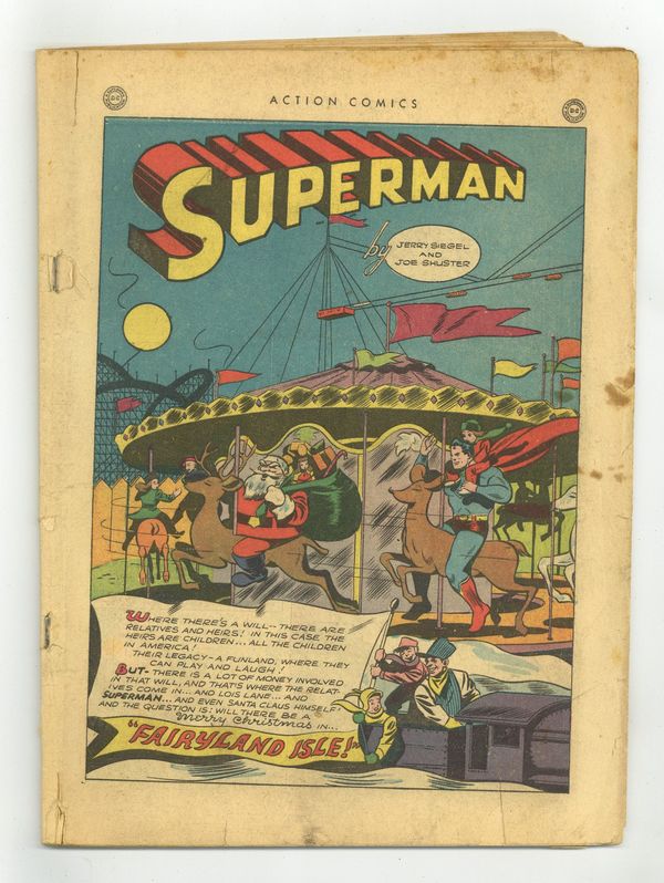 Cover art by Wayne Boring and Stan Kaye. Fairyland Isle starring Superman, script by Jerry Siegel, art by Ira Yarbrough (as Joe Shuster). The Man Who Stole Time starring Hayfoot Henry, art by Thurston Harper. Nemesis of the Northland starring Congo Bill, art by John Daly. The Chinatown Kid, Magician starring The Vigilante, script by Joe Samachson, art by Mort Meskin (as Mort Morton Jr.). Sea-Going Sparklers starring Zatara. 52 Pages, Full Color. $.10 Cover price $0.10. Grade: Coverless explanation of grade Condition: Used (collectible)