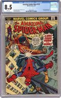 "...Just A Man Called Cage!" Guest-starring Luke Cage. Script by Gerry Conway. Pencils by Gil Kane and John Romita. Inks by John Romita and Tony Mortellaro (backgrounds). Cover by John Romita and Tony Mortellaro. While Peter Parker and his friends attend Gwen Stacy's funeral, J. Jonah Jameson plots revenge against the web-slinger for the death of Norman Osborn. The Daily Bugle publisher wants the wall-crawler captured dead or alive -- and he hires the powerful Luke Cage to do it! On a Manhattan rooftop, the Hero for Hire ambushes Spider-Man! And the super slugfest begins! The two heroes trade punches, body blows, and haymakers one after another! How will they break the stalemate -- before they break each other in half? Cameo appearances by Mary Jane Watson, Harry Osborn, Betty Brant, Joe Robertson, Flash Thompson, Anna Watson, Aunt May, and Norman Osborn (deceased). (Notes: This issue features the first meeting between Spider-Man and Luke Cage. The plot crosses over briefly with Power Man and Iron Fist (1972 Hero for Hire) #12. This story was reprinted in Marvel Tales 100.) 36 pages. Cover price $0.20. Grade: CGC 8.5 explanation of grade Condition: Used (collectible)
