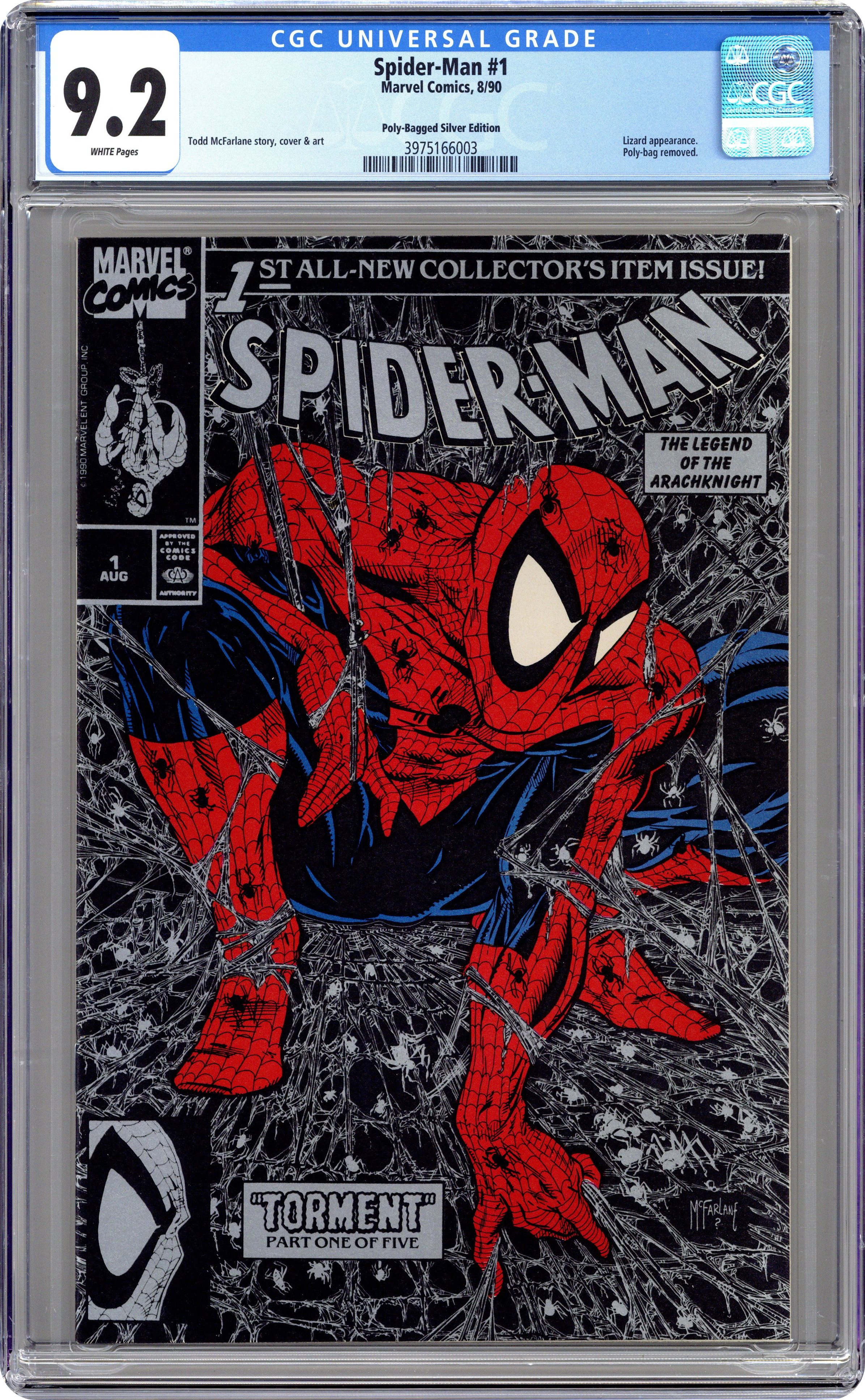 Spider-Man (1990 Marvel) 1SILVERU CGC 9.2 McFarlane Unbagged No Print Price Variant