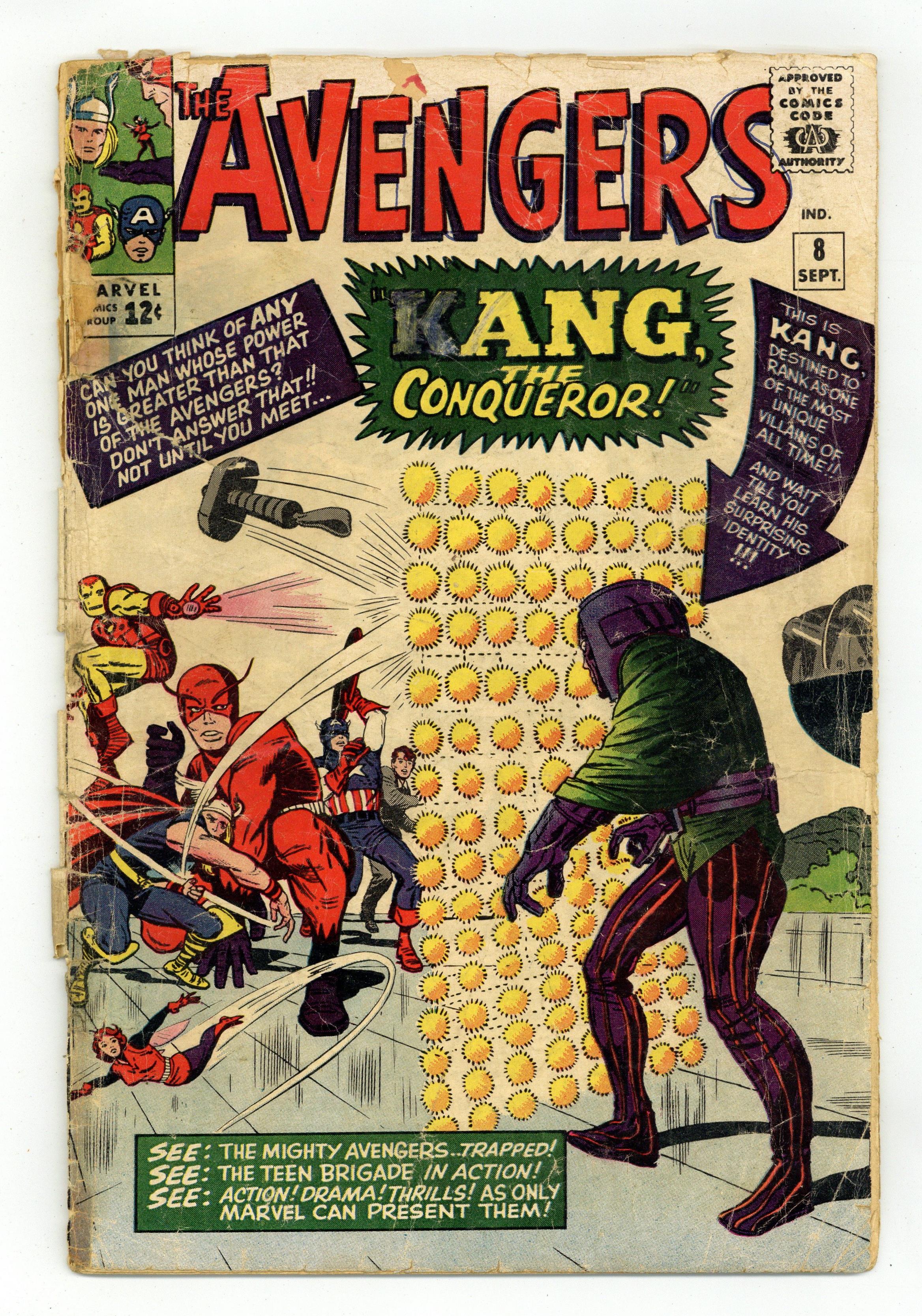 Ended Feb 4 2024 Winning Bid $112 Cover pencils by Jack Kirby, inks by Dick Ayers. Kang, The Conqueror!, script by Stan Lee, pencils by Jack Kirby, inks by Vince Colletta cover; Kang appears and demands to be made ruler of the Earth; The Avengers attempt to stop him, but it comes down to Wasp and the Teen Brigade to slow Kang long enough for the rest of the Avengers to free themselves and put an end to Kang's threat. Roster: Captain America, Thor, Iron Man, Wasp, Giant-Man, and Rick Jones. First appearance of Kang. 36 pgs. $0.12. Cover price $0.12. Grade: FR 1.0 explanation of grade Condition: Used (collectible)