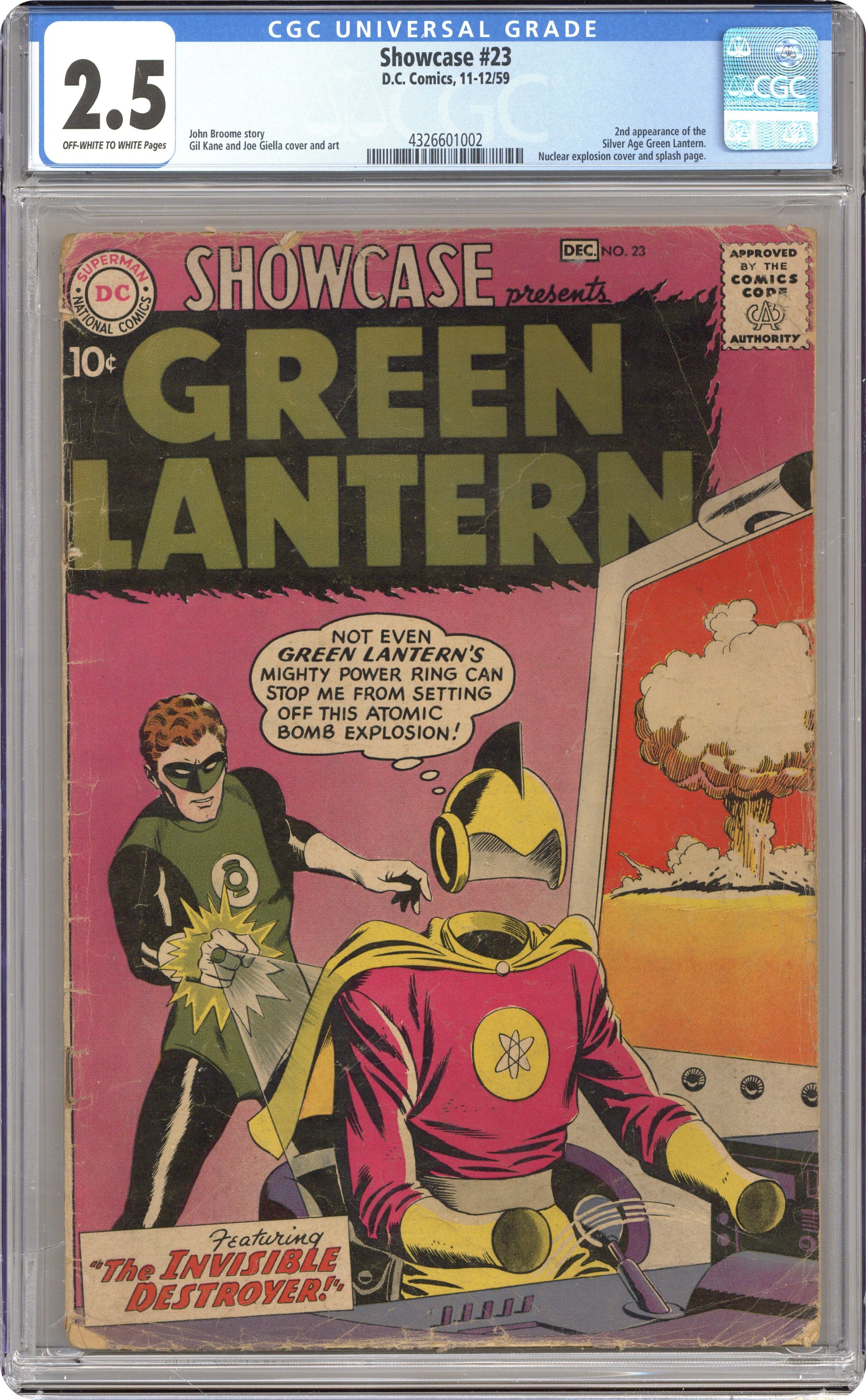 Ended Jan 30 2024 Winning Bid $255 2nd appearance of Green Lantern. Cover and interior pencils by Gil Kane, cover and interior inks by Joe Giella. Summons from Space!; Green Lantern travels to Venus to save a blue-skinned caveman-like race from attack by yellow Pterodactyl-like creatures. The Invisible Destroyer!; When Dr. Phillips is distracted, The Invisible Destroyer is released from his mind. Scripts by John Broome. 36 Pages, Full Color. Cover price $0.10. Grade: CGC 2.5 explanation of grade Condition: Used (collectible)