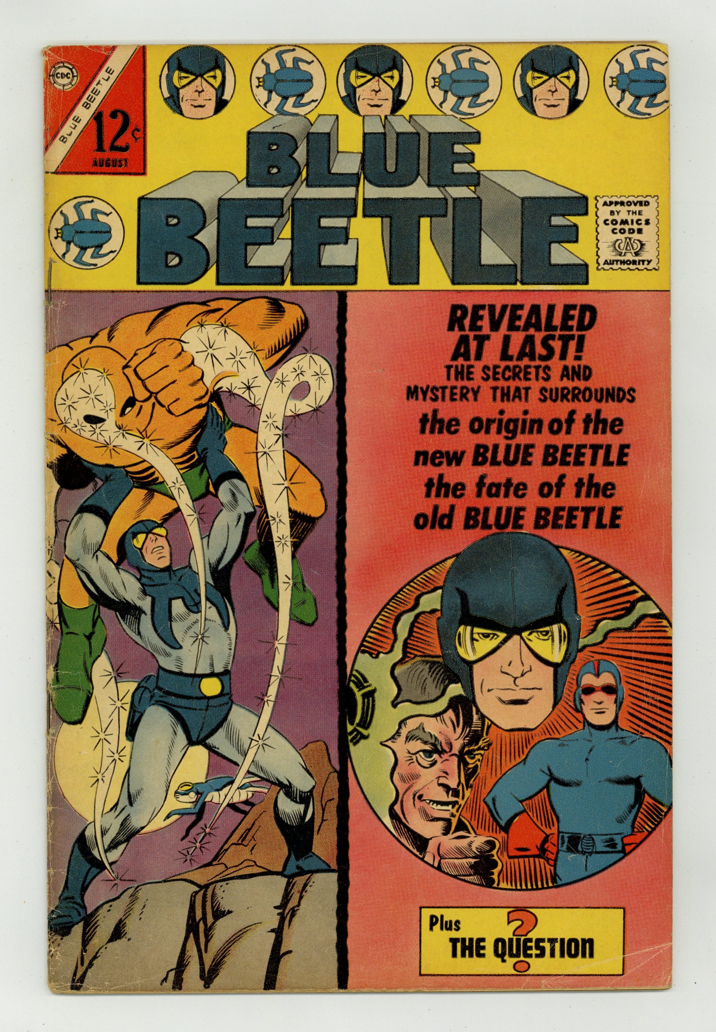 Ended Dec 11 2023 Winning Bid $37 Cover by Steve Ditko. Stories and art by Steve Ditko, David Charles Glanzman and Dick Giordano. The third (or fourth, depending on how you count it) Charlton series to feature the Blue Beetle introduces the Silver Age BB, Ted Kord. The origin of the new Blue Beetle is revealed, as well as his connection to Dan Garrett, the Golden Age Blue Beetle. (Both heroes inspired characters in Alan Moore's Watchmen, as did The Question.) The faceless crimefighter The Question must find a way to silence the sinister Banshee. The End Is a Beginning!; The Question vs. the Banshee. 32 pages, Full Color. Cover price $0.12. Grade: VG- 3.5 explanation of grade Condition: Used (collectible)