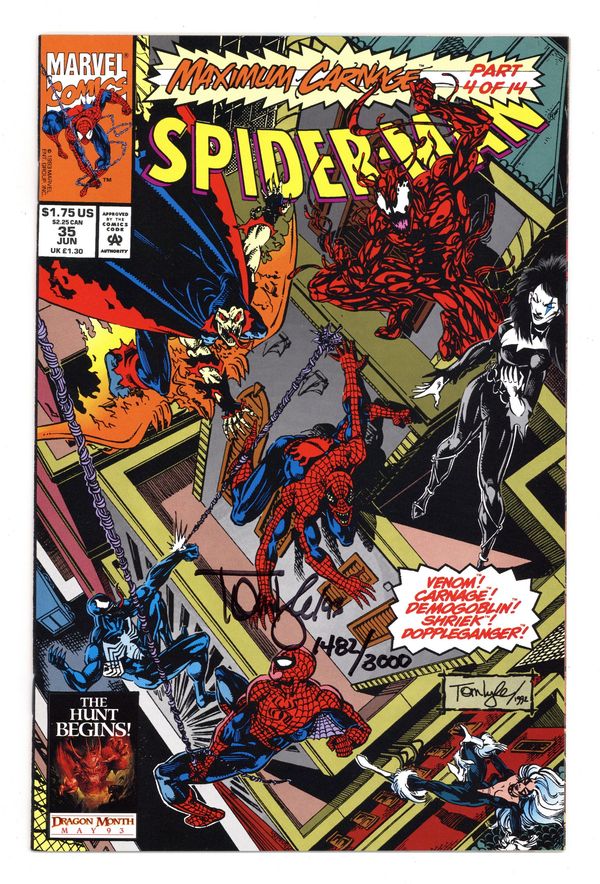 Ended Dec 19 2023 Winning Bid $91 A complete signed and numbered set of ALL 14 Maximum Carnage issues with a Dynamic Forces Certificate of Authenticity. Each comic is autographed by its respective artist, 14 signatures in all from Ron Lim, Alex Saviuk, Mark Bagley, Sal Buscema, and Tom Lyle. Grade: VF 8.0 explanation of grade Condition: Used (collectible)