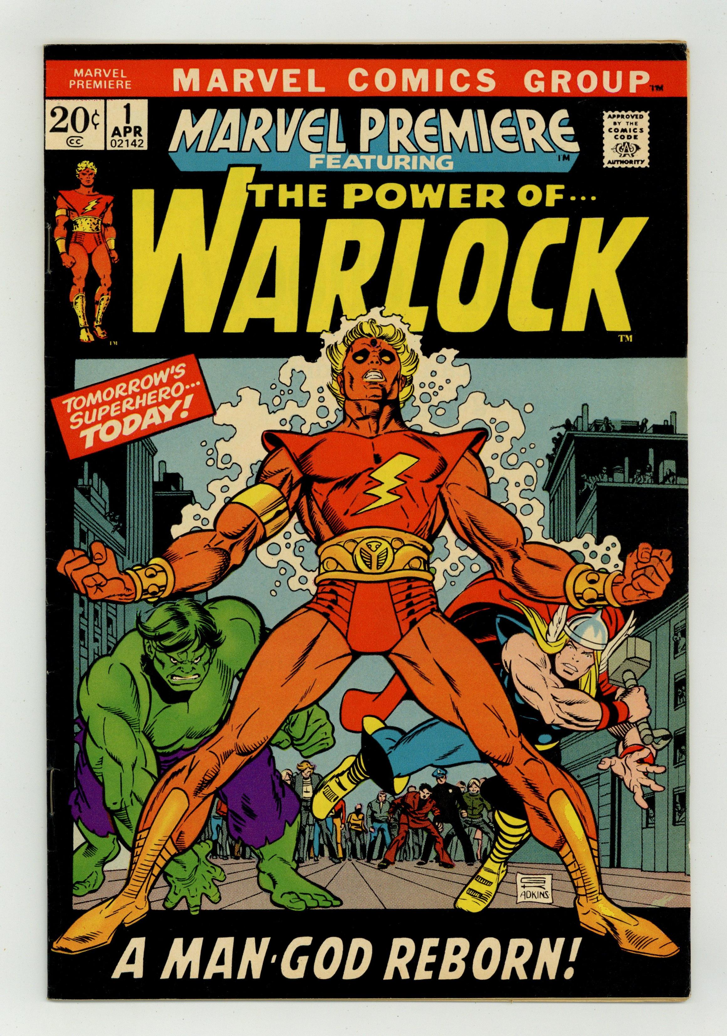 Ended Dec 20 2023 Winning Bid $78 Origin of Warlock and Counter-Earth in "And Men Shall Call Him Warlock!" Script by Roy Thomas, pencils by Gil Kane, inks by Dan Adkins. This is the first appearance of Warlock, who was previously the character "Him" in Fantastic Four (see issues 66 and 67) and Thor (issues 165, 166) comics. High Evolutionary guest stars. Brief appearances by the Hulk and Thor. Kane/Adkins cover. Cover price $0.20. Grade: FN- 5.5 explanation of grade Condition: Used (collectible)