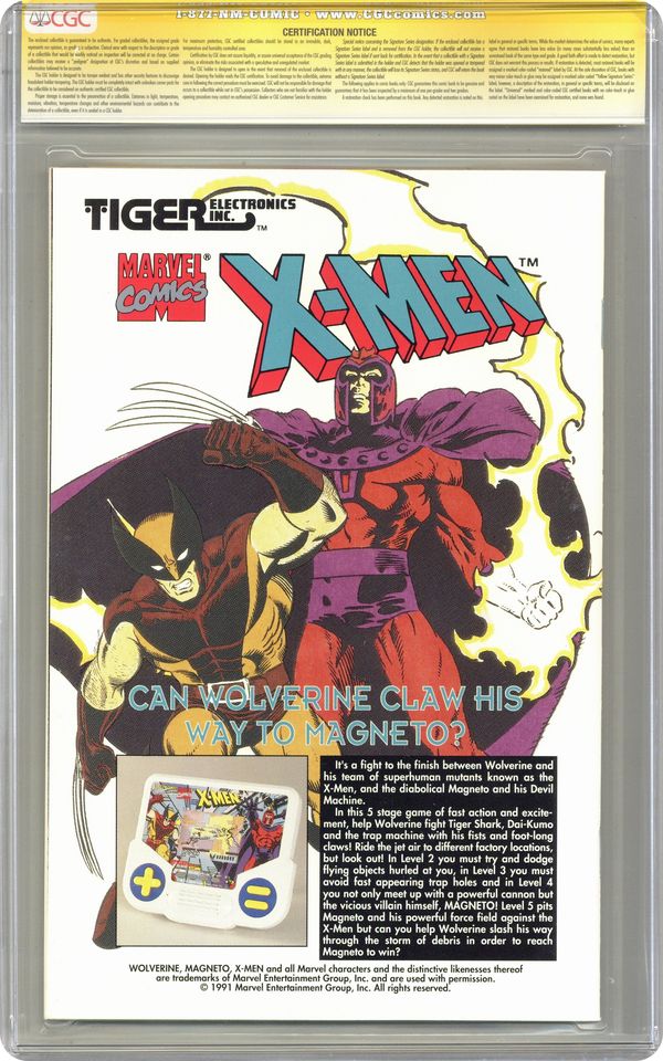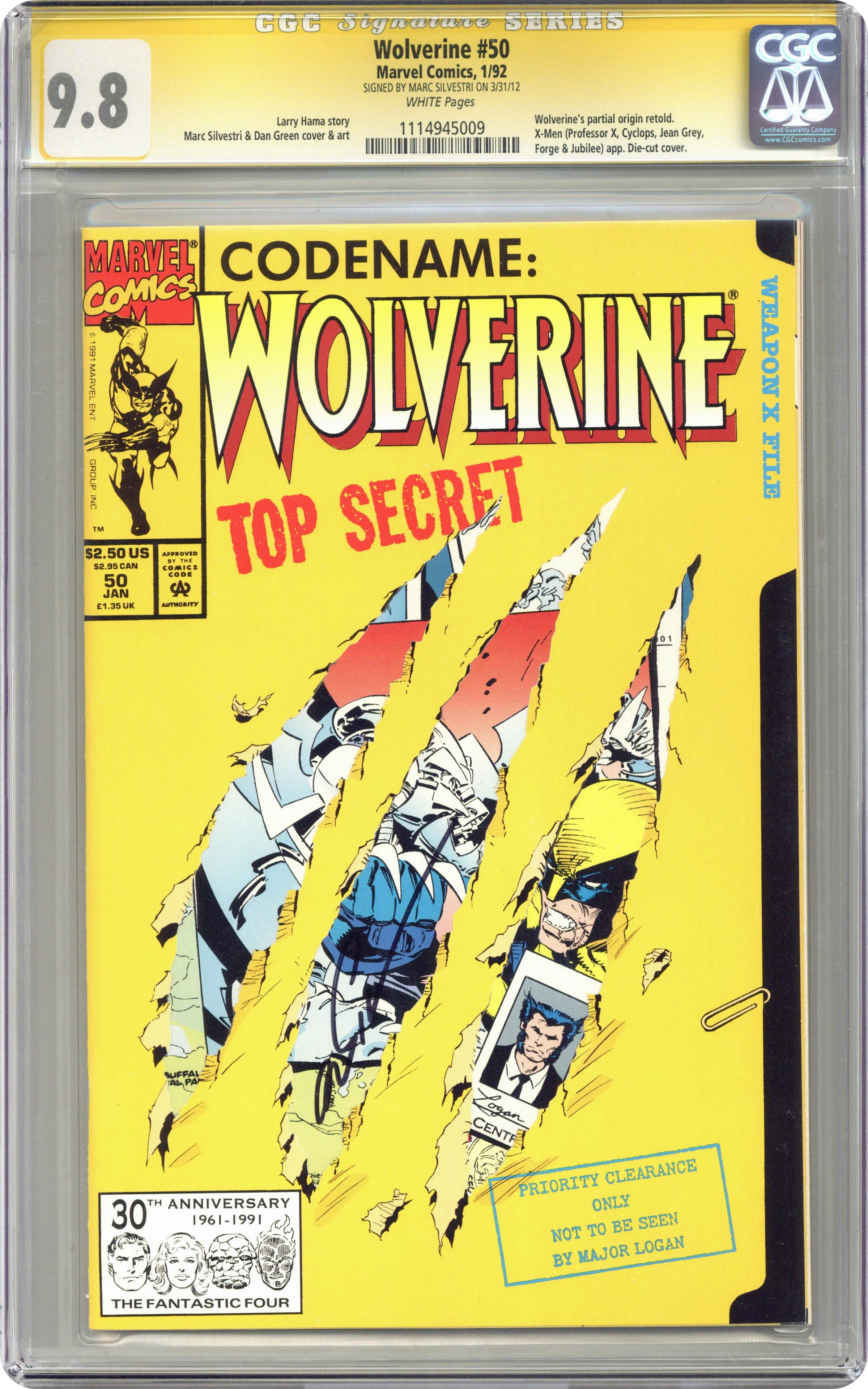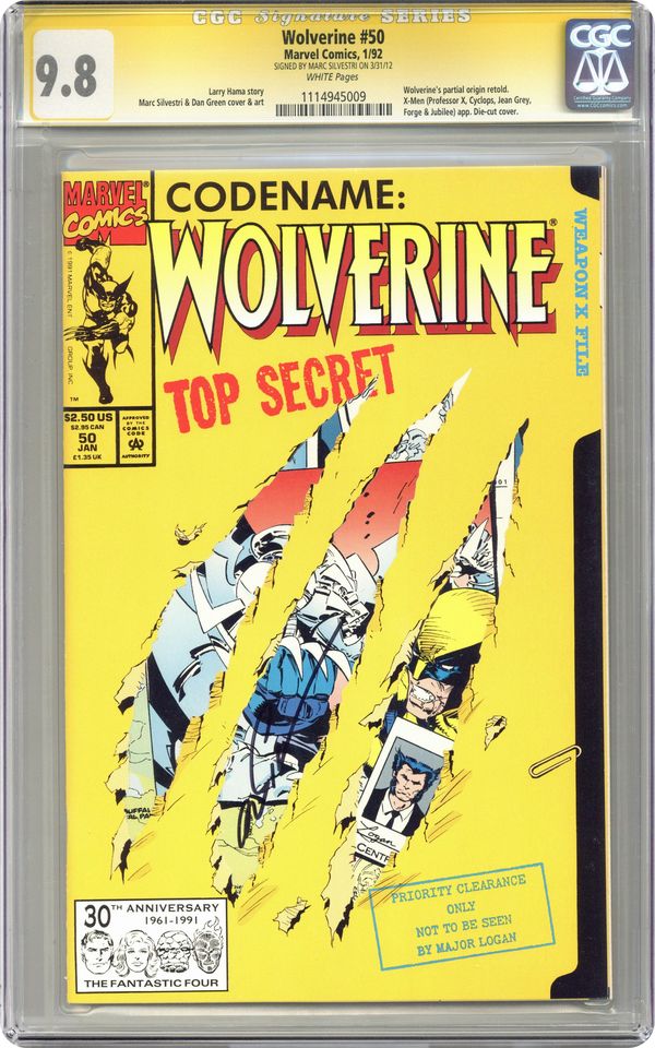 Direct Edition. Shiva Scenario: Phase 3 of 3 - "Dreams of Gore!" Guest-starring the X-Men. Written by Larry Hama. Art by Marc Silvestri and Dan Green. Wolverine discovers the location where his memory implants were created. But when he gets there he also discovers the mechanical monster known simply as Shiva, a robot programmed to hunt and kill renegade members of the Weapon X Program. Featuring pin-ups by Bill Sienkiewicz and Jim Lee. 64 pages, FC NOTE: The astounding sequel to Weapon X from Marvel Comics Presents (1988-1995) #72-84. Cover price $2.50. Grade: CGC 9.8 explanation of grade Condition: Used (collectible)