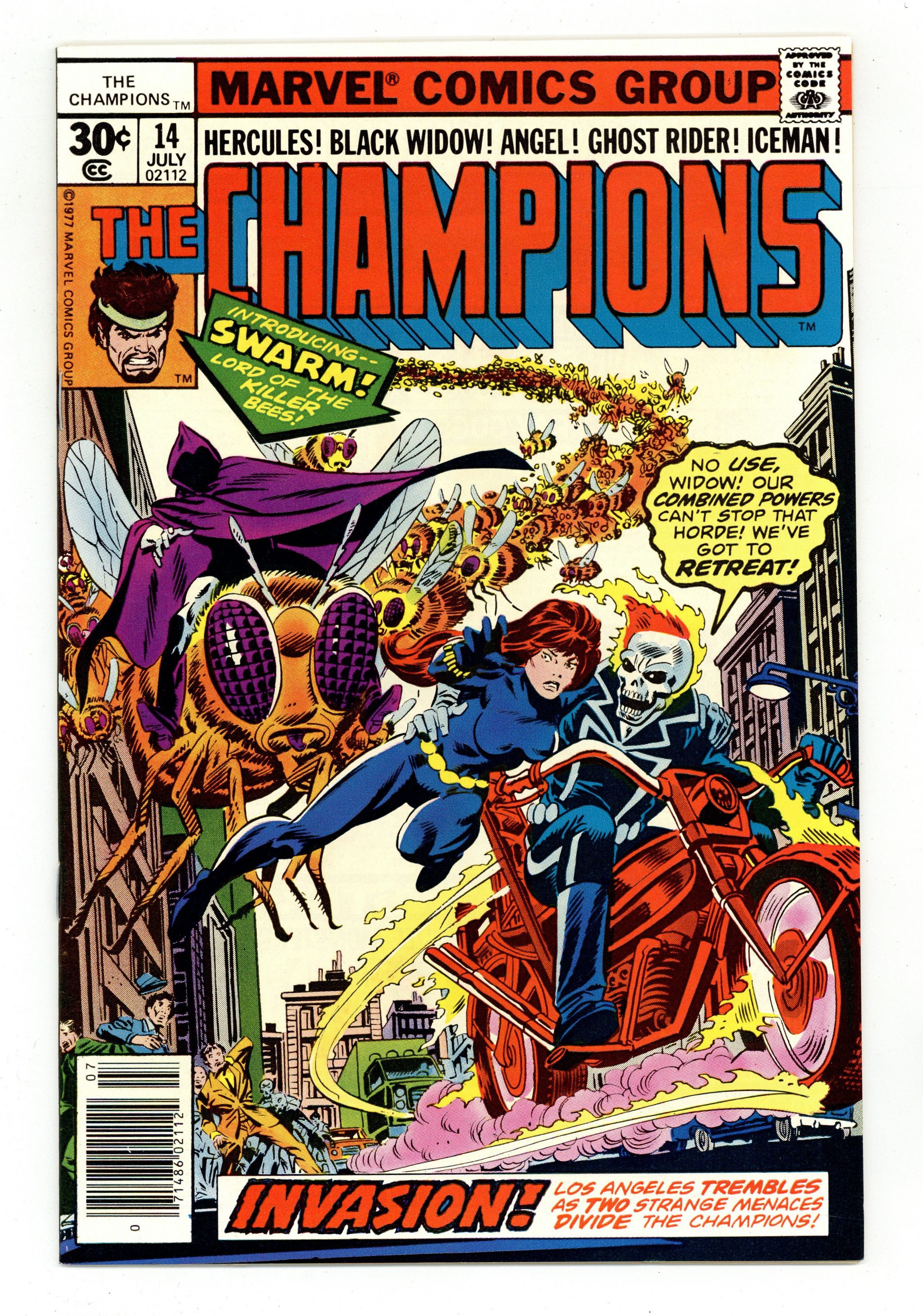 Ended Dec 19 2023 Winning Bid $12 "The Creature called Swarm!" Part 1 of 2. Story by Bill Mantlo. Art by John Byrne and Mike Esposito. Introducing the menace of Swarm (1st appearance)! Can the Champions hope to defeat a fiend who can control the stings of millions of bees? What is this mysterious villain after, and what does it mean for the future of mankind? Meanwhile, Hercules and Ice Man are attacked by the Champions' headquarter's own defenses? Plus, the team says goodbye to one of their own. NOTE: Swarm made a memorable appearance in the "Spider-Man and His Amazing Friends" Saturday morning cartoon a few years after the release of this issue. - Odinson, Lone Star Comics Archivist Cover price $0.30. Grade: FN+ 6.5 explanation of grade Condition: Used (collectible)