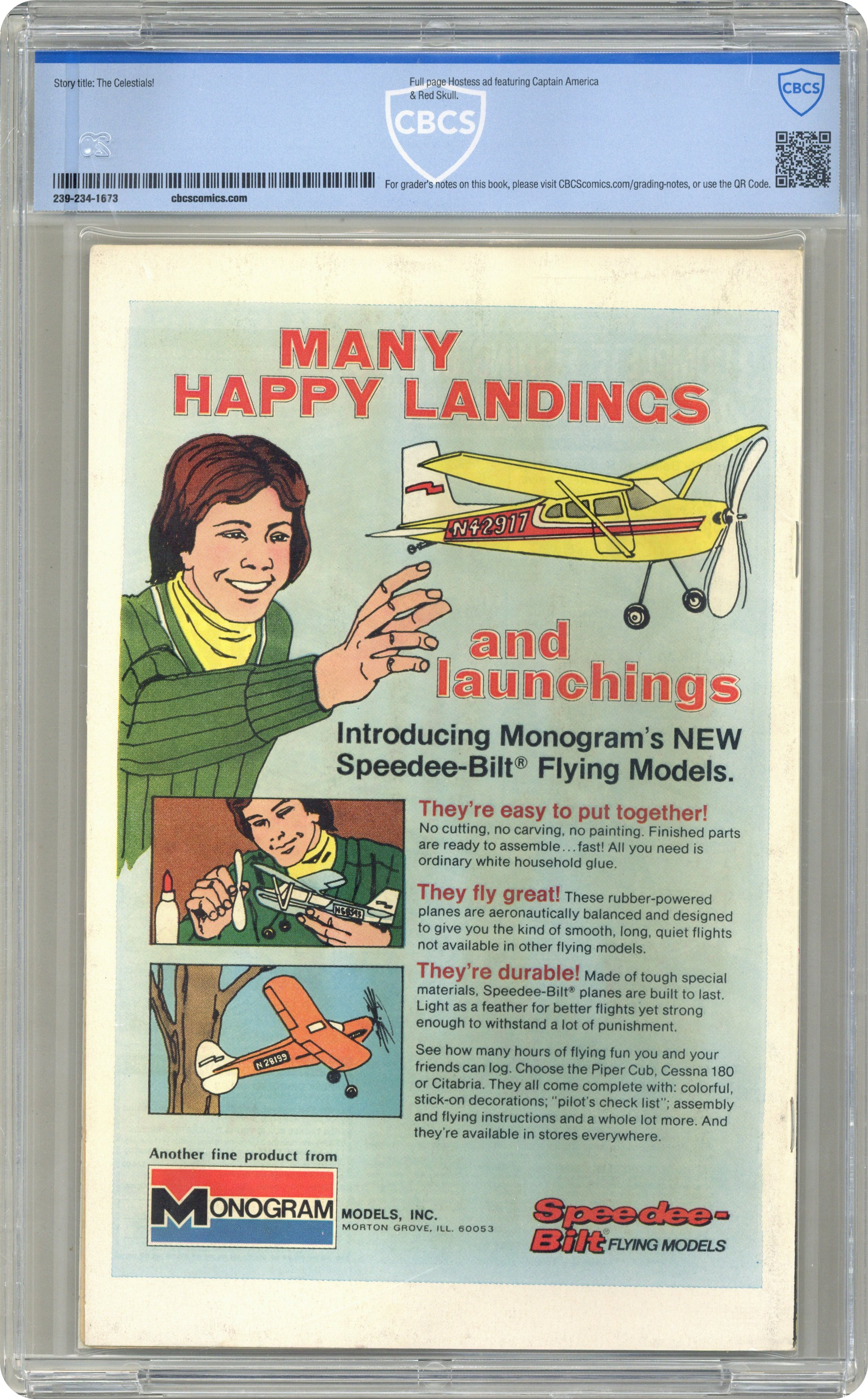 Ended Dec 5 2023 Winning Bid $22 "The Celestials!" Written by Jack Kirby. Pencils by Jack Kirby. Inks by John Verpoorten. The gods are real and they live among us! Archeologist Doctor Damian and his daughter Margo, led by the enigmatic Ikaris, soon learn that they are not alone in this universe. But could the return of the space gods known as the Celestials possibly mean. Note: 1st appearance of Ajak and the Celestial Arishem the Judge. Cover price $0.25. Grade: CBCS 8.0 explanation of grade Condition: Used (collectible)