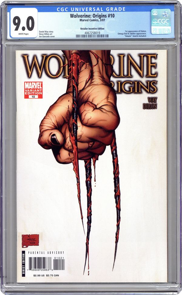 Wolverine Origins (2006) 10C CGC 9.0 Quesada Third Claw 1:100 Variant