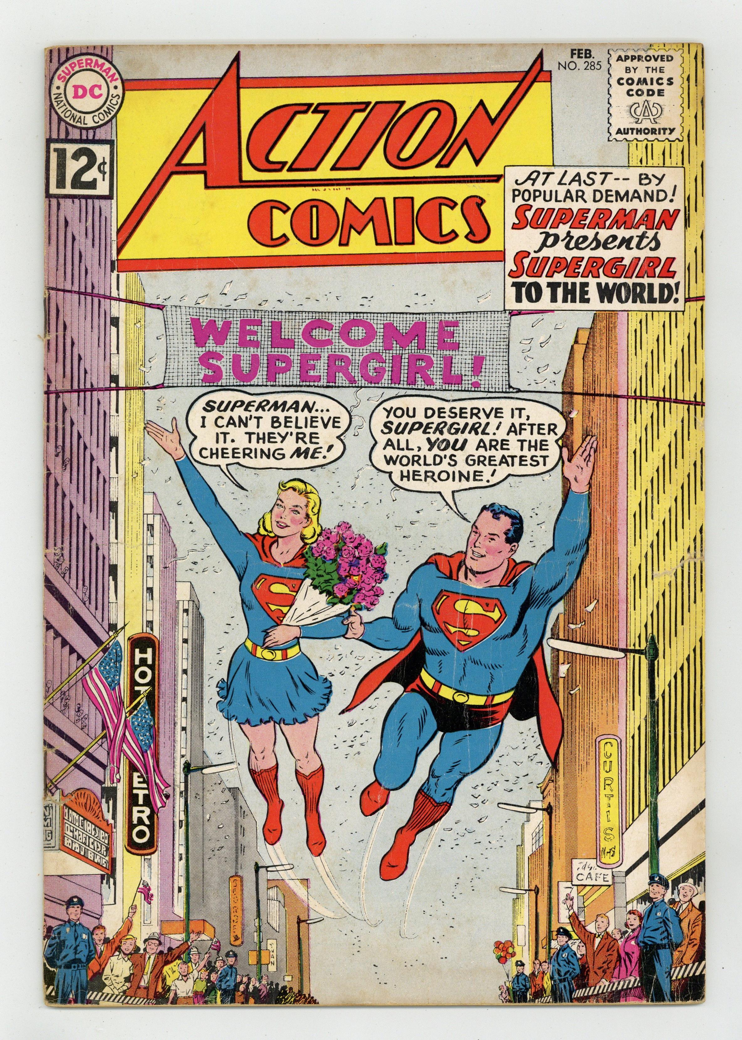 Ended Jan 4 2024 Winning Bid $78 Cover pencils by Curt Swan, inks by George Klein. "The World's Greatest Heroine!, Part 1", script by Jerry Siegel, art by Jim Mooney; Superman reveals Supergirl to the world; President John F. Kennedy appearance; Jackie Kennedy cameo. One-page Little Pete story by Henry Boltinoff. "The Infinite Monster!, Part 2", script by Jerry Siegel, art by Jim Mooney; Supergirl stops a creature from another dimension in her first solo adventure after Superman revealed her to the world. 36 Pages, Full Color. $.12 Cover price $0.12. Grade: GD+ 2.5 explanation of grade Condition: Used (collectible)
