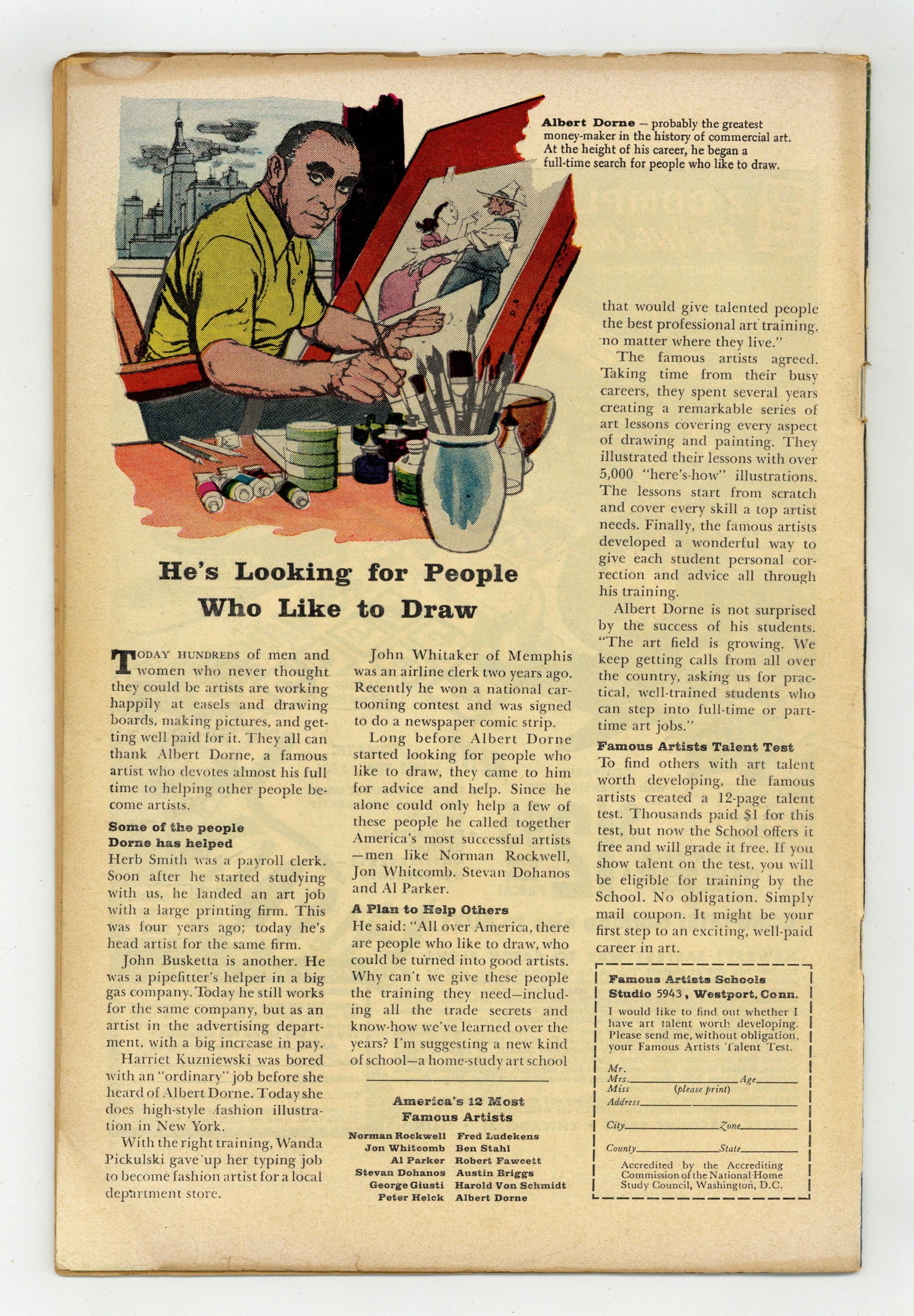 Ended Jan 23 2024 Winning Bid $105 Cover pencils by Jack Kirby, inks by Dick Ayers. "Thor and Loki Attack the Human Race!", script by Stan Lee (plot) and Robert Bernstein (script), art by Joe Sinnott; Loki uses his magic to cause Thor's hammer to hit his head, turning him evil; Odin and Heimdall appearances. "Bird Talk" two-page text story. "Dinner Time on Deimos!", script by Stan Lee (plot) and Larry Lieber (script), art by Larry Lieber; In the future, Earth is overpopulated, and even the very rich must work an hour on a farm each week to produce enough food. "The Gentle Old Man!", script by Stan Lee, art by Steve Ditko; A greedy landlord is captured by a time traveler who maintains a collection of 'dolls' consisting of miniaturized heartless people from different eras. 36 pgs., full color. $0.12. Cover price $0.12. Grade: GD/VG 3.0 explanation of grade Condition: Used (collectible)