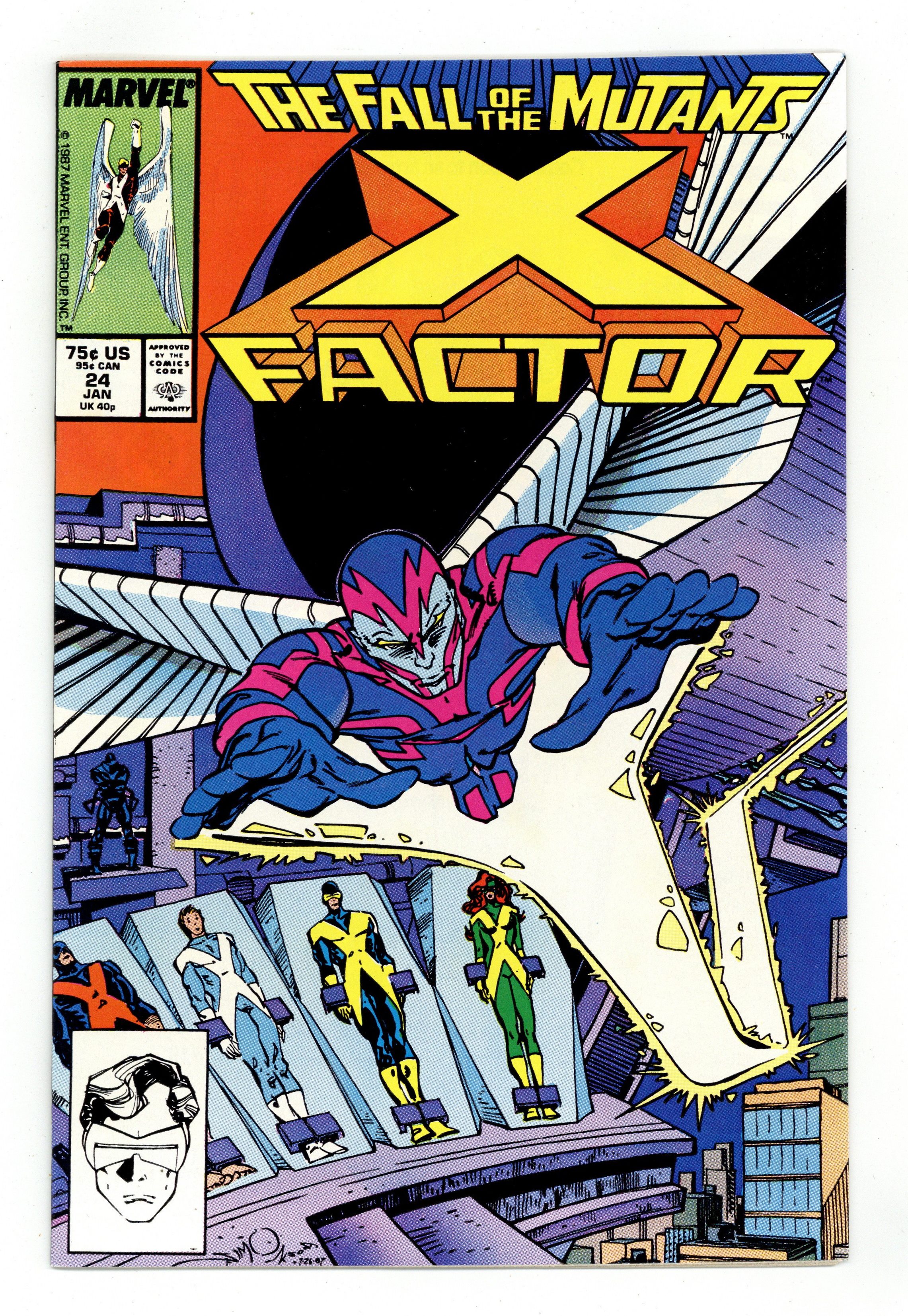 Ended Dec 6 2023 Winning Bid $26 Direct Edition. Fall of the Mutants! Part 1 of 3. "Masks!" 1st full appearance of Archangel. Story by Louise Simonson. Art by Walter Simonson and Bob Wiacek. One of the biggest mutant events to ever hit the comic racks begins here. The powerful mutant known as Apocalypse finally makes his move and unleashes his Four Horseman on an unsuspecting world. The only thing standing between humanity and total annihilation is X-Factor. However when the fourth and final Horseman, Death, reveals his true identity, the group will be rocked to its very core. This is a pivotal chapter in the lives of the original X-Men. Cover price $0.75. Grade: VF 8.0 explanation of grade Condition: Used (collectible)