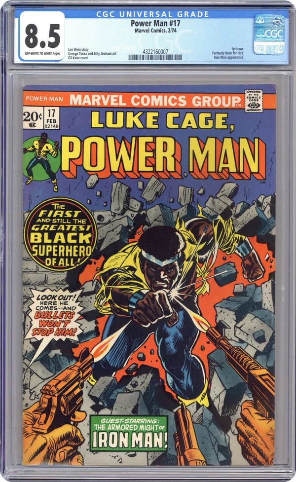 Ended Dec 4 2023 Winning Bid $49 "Rich Man: Iron Man, Power Man: Thief!" Guest-starring Iron Man. Story by Len Wein. Art by George Tuska and Billy Graham. A man in a suit and tie comes as a representative for Tony Stark to hire Luke Cage to test the security at Stark International. This puts Power Man in direct conflict with Stark's bodyguard, the Invincible Iron Man. Plus, what happens when Shell-Head reveals that nobody at Stark International hired Cage? Can these two iron-fisted heroes stop beating on each other long enough to catch the culprit behind it all? NOTE: 1st issue to be titled Power-Man. Cover price $0.20. Grade: CGC 8.5 explanation of grade Condition: Used (collectible)