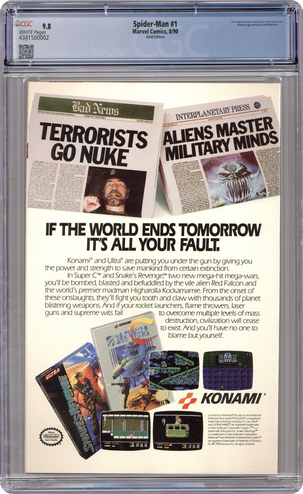 Ended Dec 19 2023 Winning Bid $130 2nd Printing, Black Cover with Gold Webbing. 2nd Printing, (Spidey's head in UPC box. This is NOT barcode version). Cover price $1.75. Grade: CGC 9.8 explanation of grade Condition: Used (collectible)