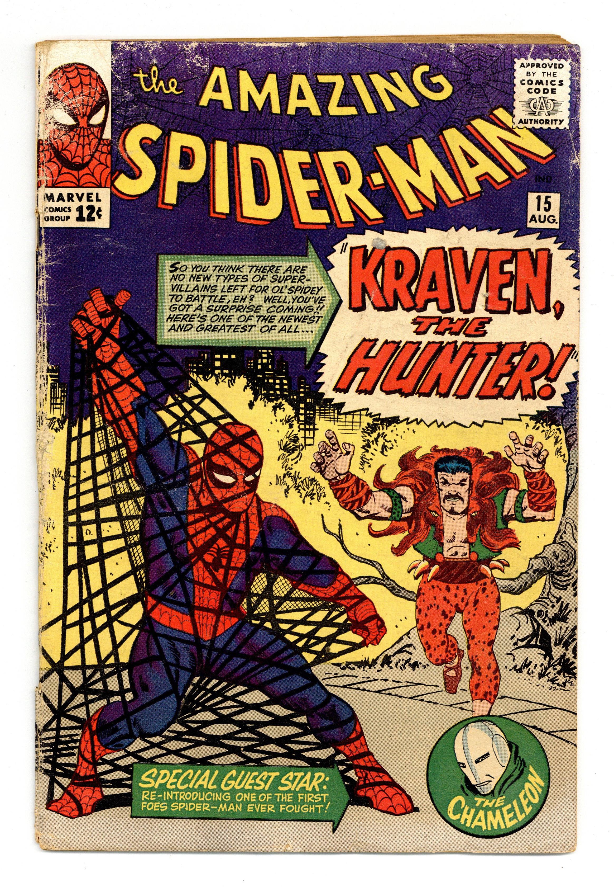 Ended Jan 29 2024 Winning Bid $346 Cover art by Steve Ditko. First appearance of Kraven the Hunter in Kraven the Hunter!, script by Stan Lee, art by Steve Ditko; The Chameleon hires his old friend Kraven the Hunter to hunt down Spider-Man. Reprinted in Marvel Tales # 10 and 153. 36 pgs. $0.12. Cover price $0.12. Grade: FR/GD 1.5 explanation of grade Condition: Used (collectible)
