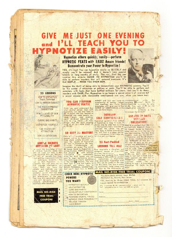 INCOMPLETE. 3 ad pages missing, does not affect art or story. Pages detached. Water saturation. Staples added (not manufacturing).