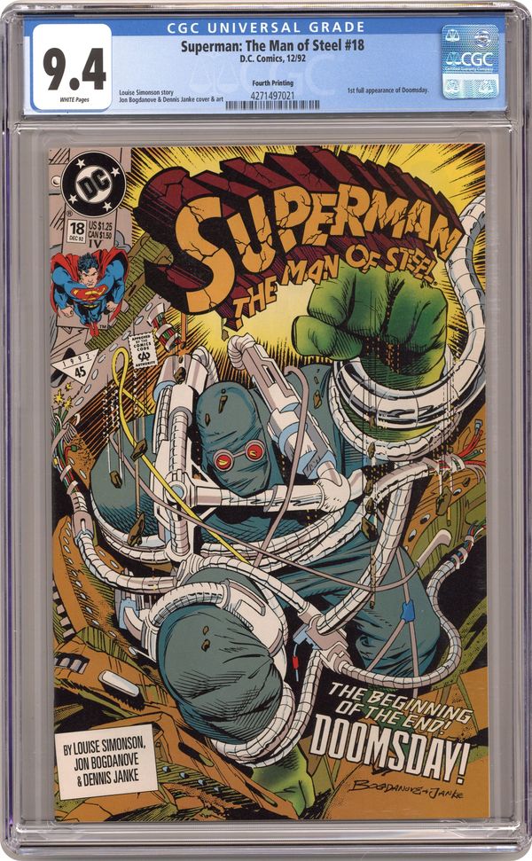 Roman Numeral IV for fourth printing, next to Issue # Cover price $1.25. Grade: CGC 9.4 explanation of grade Condition: Used (collectible)