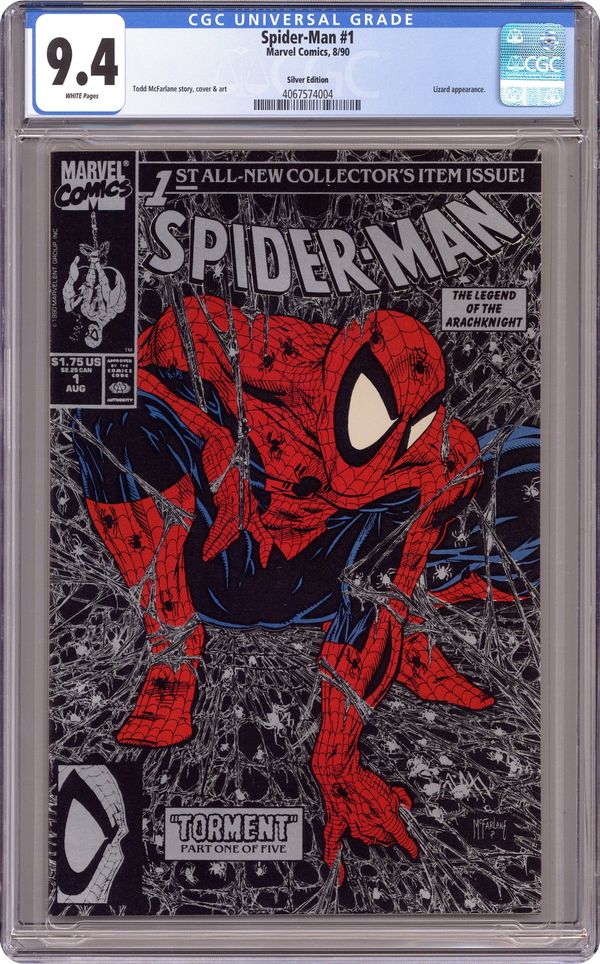 This is an unbagged black cover with silver webbing and $1.75 cover price. Cover price $1.75. Grade: CGC 9.4 explanation of grade Condition: Used (collectible)