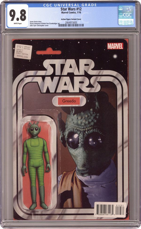 Written by Jason Aaron. Art by Stuart Immonen. Cover by John Tyler Christopher. Showdown on the Smuggler's Moon! Plus: Lightsabers! Loads of Lightsabers! And finally: the truth about Sana Solo! 28 pages, full color, Rated T. Cover price $3.99. Grade: CGC 9.8 explanation of grade Condition: Used (collectible)