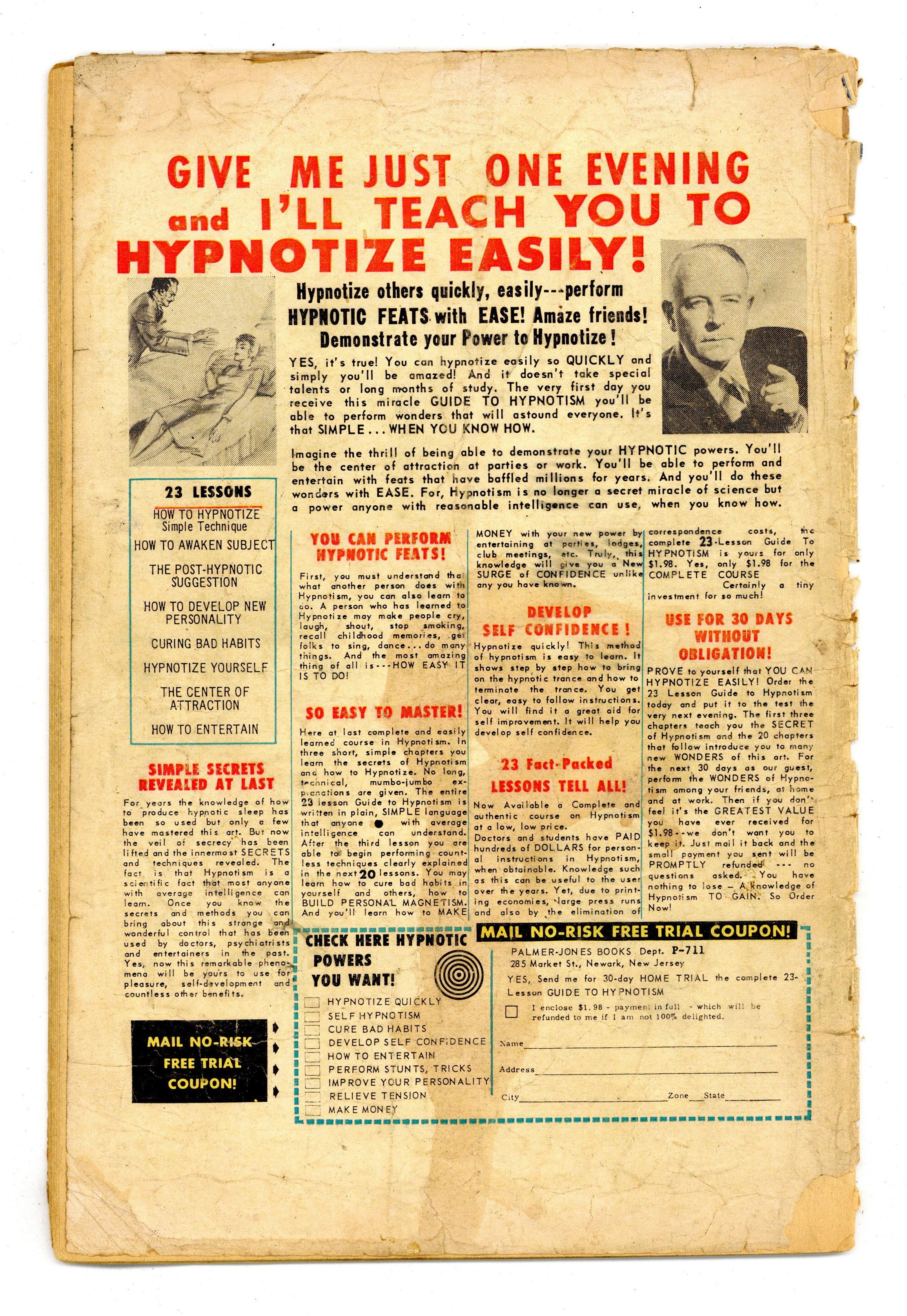 SOLD$150.00- INCOMPLETE. Ad page missing, does not affect art or story. 3" cumulative spine split. Cover detached. Cover oxidation.