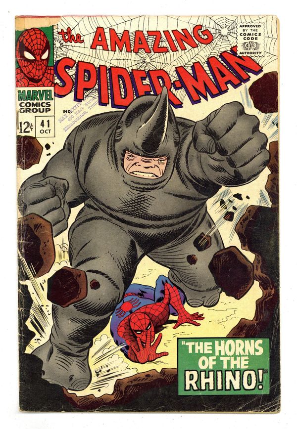 Cover pencils by John Romita Sr., inks by Mike Esposito and John Romita (touch-ups). First appearance of the Rhino in The Horns of the Rhino!, script by Stan Lee, pencils by John Romita Sr., inks by Mike Esposito (as M. Demeo) and John Romita Sr. (touch-ups); The Rhino attempts to kidnap John Jameson to turn him over to foreign powers that want his secrets about the U.S. space program; Spider-Man manages to stop the Rhino. Reprinted in Marvel Tales # 30 and 190. 36 pgs., full color. $0.12. Cover price $0.12. Grade: GD/VG 3.0 explanation of grade Condition: Used (collectible)