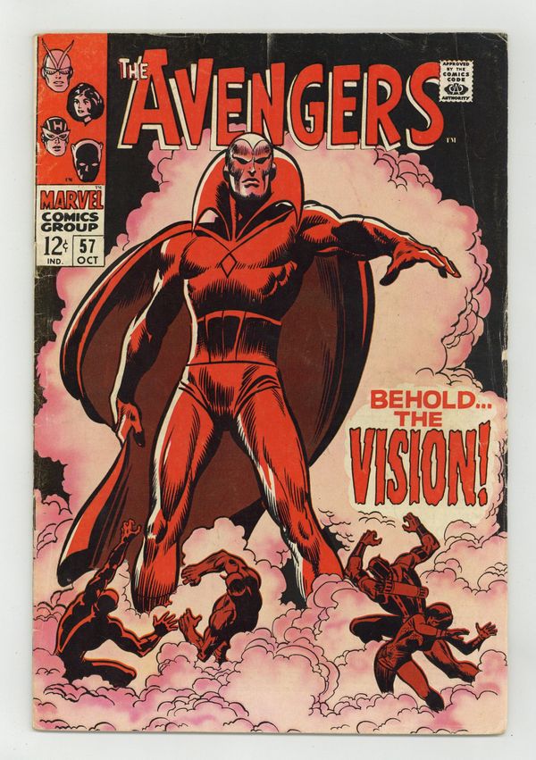 Ended Dec 20 2023 Winning Bid $175 First appearance of the Vision in "Behold...the Vision!" Part 1 of 2. Script by Roy Thomas. Pencils by John Buscema. Inks by George Klein. Cover by John Buscema and George Klein. One of the landmark issues of the silver age! On a rainy night in Manhattan, a strange being enters Janet Van Dyne's apartment and suddenly collapses! The Wasp quickly calls Goliath; and they take the red-hued stranger to Avengers Mansion for examination! Once their Hank Pym discovers that the Vision is a human being constructed of synthetic materials - a synthezoid in fact! When the Vision wakes up, he remembers that Ultron sent him to destroy the Avengers! But now the Vision wants to flip the script on his creator! So he leads Earth's Mightiest Heroes back to Ultron's underground lair! Could this be a trap? Either way Ultron-5 is waiting! And the battle is coming! Will the Vision prove worthy of the Avengers' trust? Cameo appearance by the Black Widow. Avengers Lineup: Black Panther, Goliath, Hawkeye, and the Wasp. (Notes: The synthezoid avenger is not to be confused with the golden age Vision (aka Aarkus). Marie Severin contributed pencils to page 3 - the second to last panel. The letters page includes a letter from comics writer Tony Isabella. This issue was reprinted in Marvel Treasury Edition (1974) #7 and also in Marvel Super Action #18.) 36 pages. Cover price $0.12. Grade: VG- 3.5 explanation of grade Condition: Used (collectible)