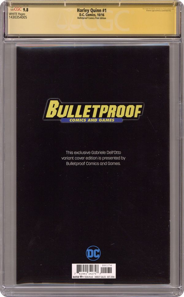 Harley Quinn (2016) 1BULLETPROOF.C CGC 9.8 SS Dell'Otto Bulletproof Pink Variant