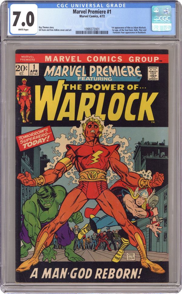 Ended Dec 11 2023 Winning Bid $145 Origin of Warlock and Counter-Earth in "And Men Shall Call Him Warlock!" Script by Roy Thomas, pencils by Gil Kane, inks by Dan Adkins. This is the first appearance of Warlock, who was previously the character "Him" in Fantastic Four (see issues 66 and 67) and Thor (issues 165, 166) comics. High Evolutionary guest stars. Brief appearances by the Hulk and Thor. Kane/Adkins cover. Cover price $0.20. Grade: CGC 7.0 explanation of grade Condition: Used (collectible)