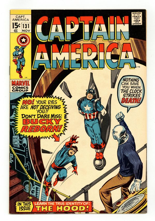 Ended Dec 27 2023 Winning Bid $22 Cover pencils by Marie Severin, inks by Joe Sinnott. "Bucky Reborn!", script by Stan Lee, pencils by Gene Colan, inks by Dick Ayers; Baron Strucker finds an amnesiac young man in the gyms of San Francisco and hypnotizes him into thinking he is Bucky; Strucker uses "Bucky" to lure Captain America into a trap; Cap and "Bucky" battle and defeat Strucker. Red Skull cameo. 36 pgs., full color. $0.15. Cover price $0.15. Grade: VF- 7.5 explanation of grade Condition: Used (collectible)