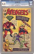 Ended Apr 17 2024 Winning Bid $330 Cover pencils by Jack Kirby, inks by Sol Brodsky. The Avengers Battle the Space Phantom, script by Stan Lee, pencils by Jack Kirby, inks by Paul Reinman; The Space Phantom comes to Earth to defeat the Avengers; If he can, then nothing can stop his race from invading Earth. Roster includes Thor, Iron Man, Wasp, Giant Man, and the Hulk, who leaves the team at the end of the issue. Rick Jones appearance. First appearance of the Avengers Mansion. 36 pgs. $0.12. Cover price $0.12. Grade: CGC 4.5 explanation of grade Condition: Used (collectible)