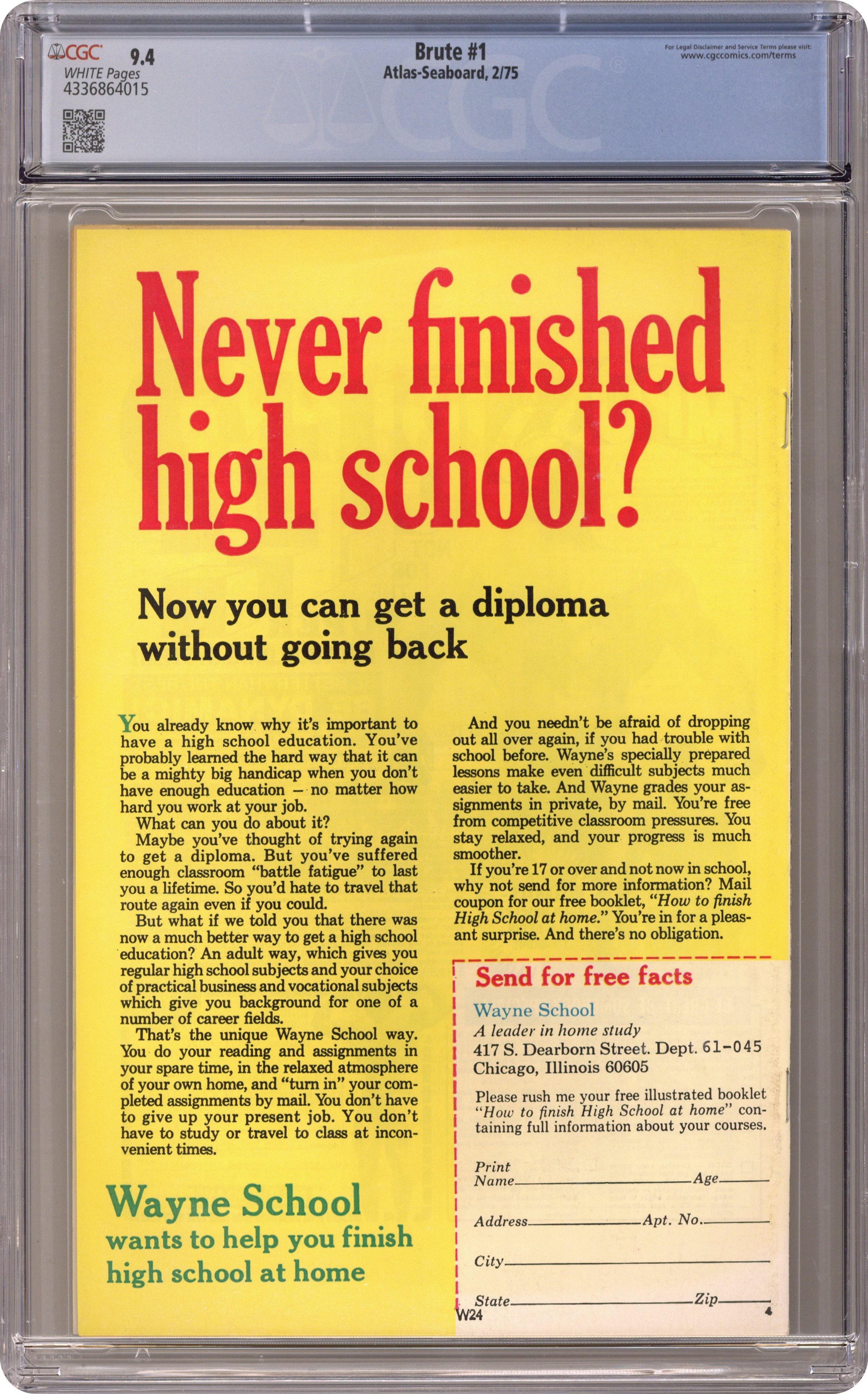Ended Dec 19 2023 Winning Bid $43 Cover art by Dick Giordano. Night of the Brute, script by Mike Fleisher, pencils by Mike Sekowsky, inks by Pablo Marcos; Origin story; The Brute is a Neanderthal who is thawed from a block of ice after thousands of years of entombment; character is similar to the Hulk. Cover price $0.25. Grade: CGC 9.4 explanation of grade Condition: Used (collectible)