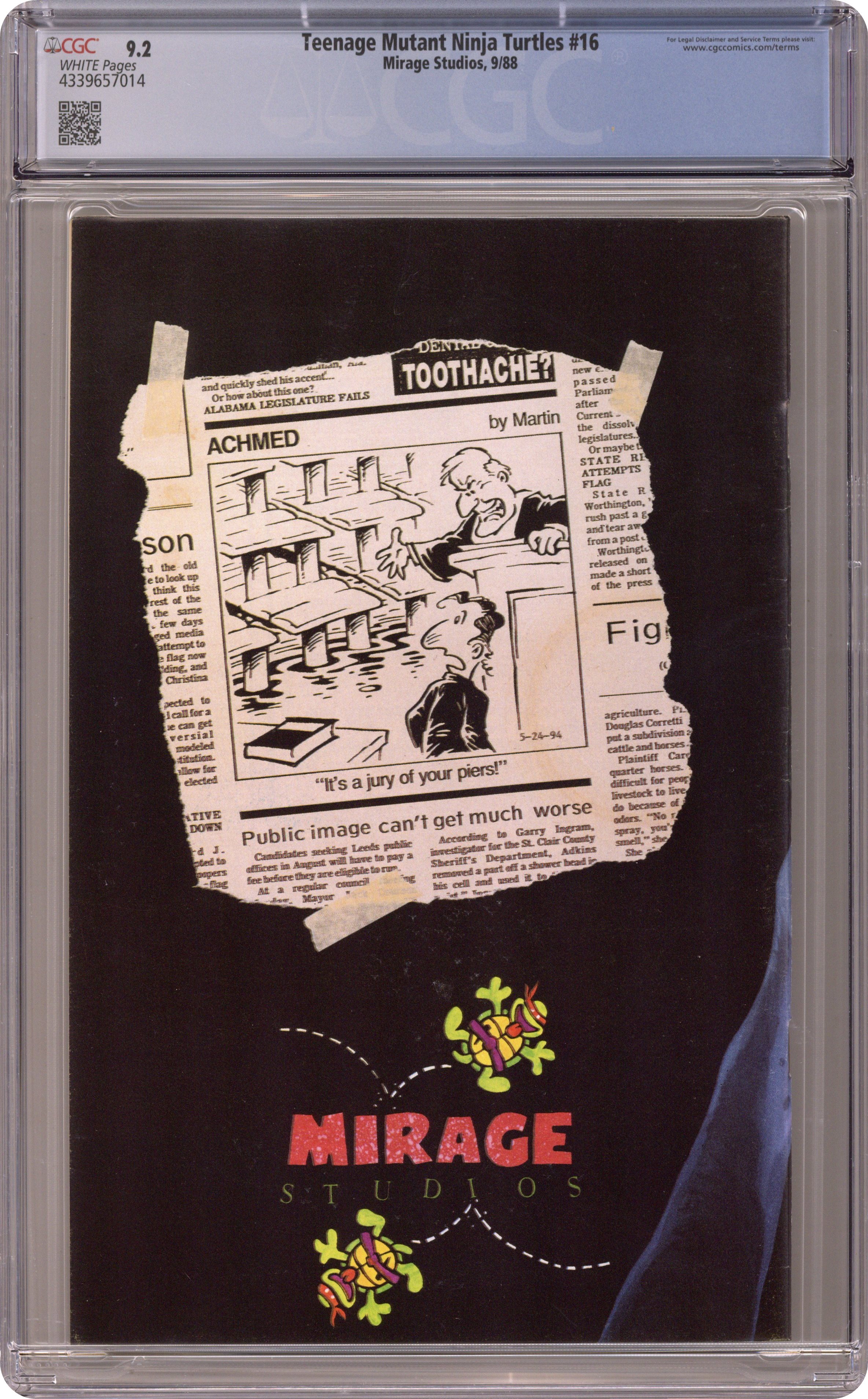 Published Jul 1988 by Mirage Studios.Teenage Mutant Ninja Turtles (1984) 16 CGC 9.2