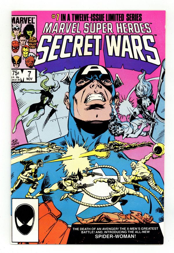 Direct Edition. 1st appearance of Spider-Woman II (Julia Carpenter). "Berserker!" Part 7 of 12. Story by Jim Shooter. Art by Mike Zeck and John Beatty. Introducing Marvel's newest super-hero, Spider-Woman, a refugee from the displaced Denver, Colorado (NOTE: The Beyonder created Battleworld from pieces of hundreds of worlds from across the universe, Denver was one of those pieces). Plus, when the villains dump the Wasp's lifeless body into the heroes' camp, the Savage She Hulk decides to pay the bad guys a visit for some payback. But, has the emerald heroine finally bitten off more than she can chew? 36 pages, full color. Cover price $0.75. Grade: VF+ 8.5 explanation of grade Condition: Used (collectible)