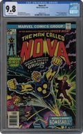 Written by Marv Wolfman. Pencils by John Buscema. Inks Joe Sinnott. When a dying alien passes on his super-powers to Earth teenager Richard Rider, Rider becomes the man called Nova, the human rocket! In the marvelous tradition of Spider-man, Nova must now stop the murderous alien known as Zorr, or Earth is doomed! Note: First appearance of Nova. 36 pages, full color. Cover price $0.30. Grade: CGC 9.8 explanation of grade Condition: Used (collectible)
