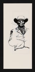 Django's bounty hunter training progresses as he perfects his draw in this extremely cool page! Also included is a partial page with a redraw of the last panel from the full page. This change was likely done at the behest of editorial and was then scanned and placed over the scan of the full page digitally. Ink over printed pencils on comic art board. Full page measures 11" x 17", partial page measures 4 3/4" x 11". NOTE: Portions of the inks on the full page, mainly solid black areas, are also printed in addition to the pencils. All inks on the partial page are hand inked over printed pencils.