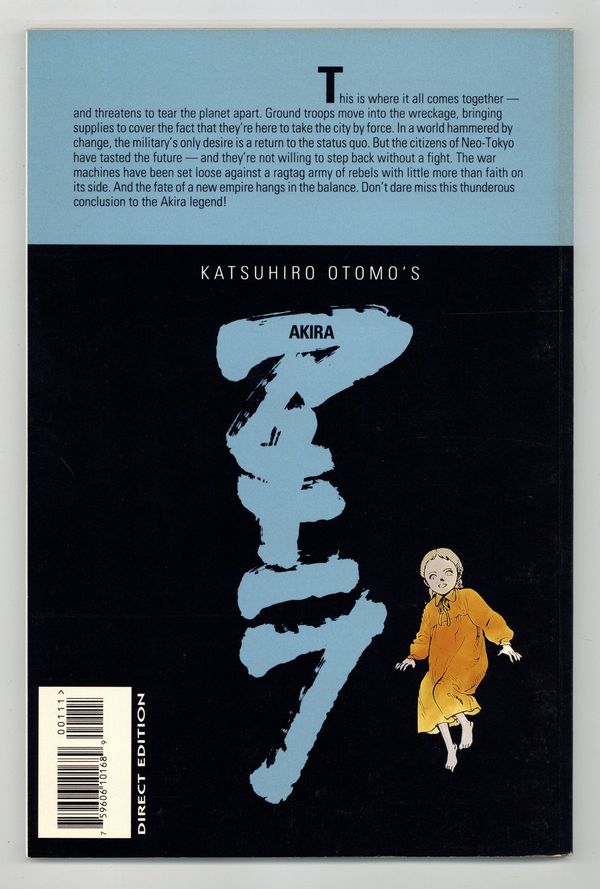 Ended Apr 18 2025 Winning Bid $255 After the battle, UN forces explore whats left of Neo-Tokyo. The first English translation of Katsuhiro Otomos influential manga series. Story, art and cover by Otomo. Color by Steve Oliff. Includes a bonus story written by Larry Hama with art by Bret Blevins, another written by Warren Ellis with art by Terry Shoemaker, and a pinup gallery featuring Moebius, Joe Madureira, George Pratt, Mike Allred, John Romita, Alex Toth, Kevin O'Neill and John Van Fleet. Final issue of the series. Mature readers. Cover price $6.95. Cover price $6.95. Grade: VG/FN 5.0 explanation of grade Condition: Used (collectible)