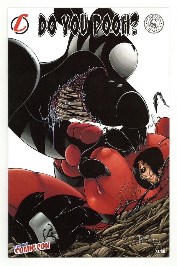 Scorpion Comics NYCC Exclusive Venomverse #1 Homage Cover - Limited to 45 copies. Written by Terry Sala and Marat Mychaels. Art by Marat Mychaels and Dietrich Smith. Deadpool parody comic starring Deadpooh! 24 pages. Grade: NM 9.4 explanation of grade Condition: Used (collectible)