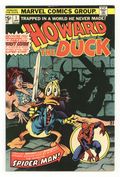Written by Steve Gerber. Art by Frank Brunner and Steve Leialoha. Cover by Frank Brunner. Howard the Barbarian; Legendary creators Steve Gerber and Frank Bruner present the audacious, quirky, downright filthy Howard the Duck in his own ongoing series!; Howards debut adventure guest stars a plethora of Marvel Heroes--Spider-Man, Conjurer, and many more; Howard is thinking of committing suicide and then finds himself involved in a bizarre adventure where he meets Beverly Switzler and Spider-Man for the first time, and faces off against Pro-Rata, the Financial Wizard. Continued from Giant-Size Man-Thing #5. 36 pgs., full color. $0.25. Cover price $0.25. Grade: VF 8.0 explanation of grade Condition: Used (collectible)