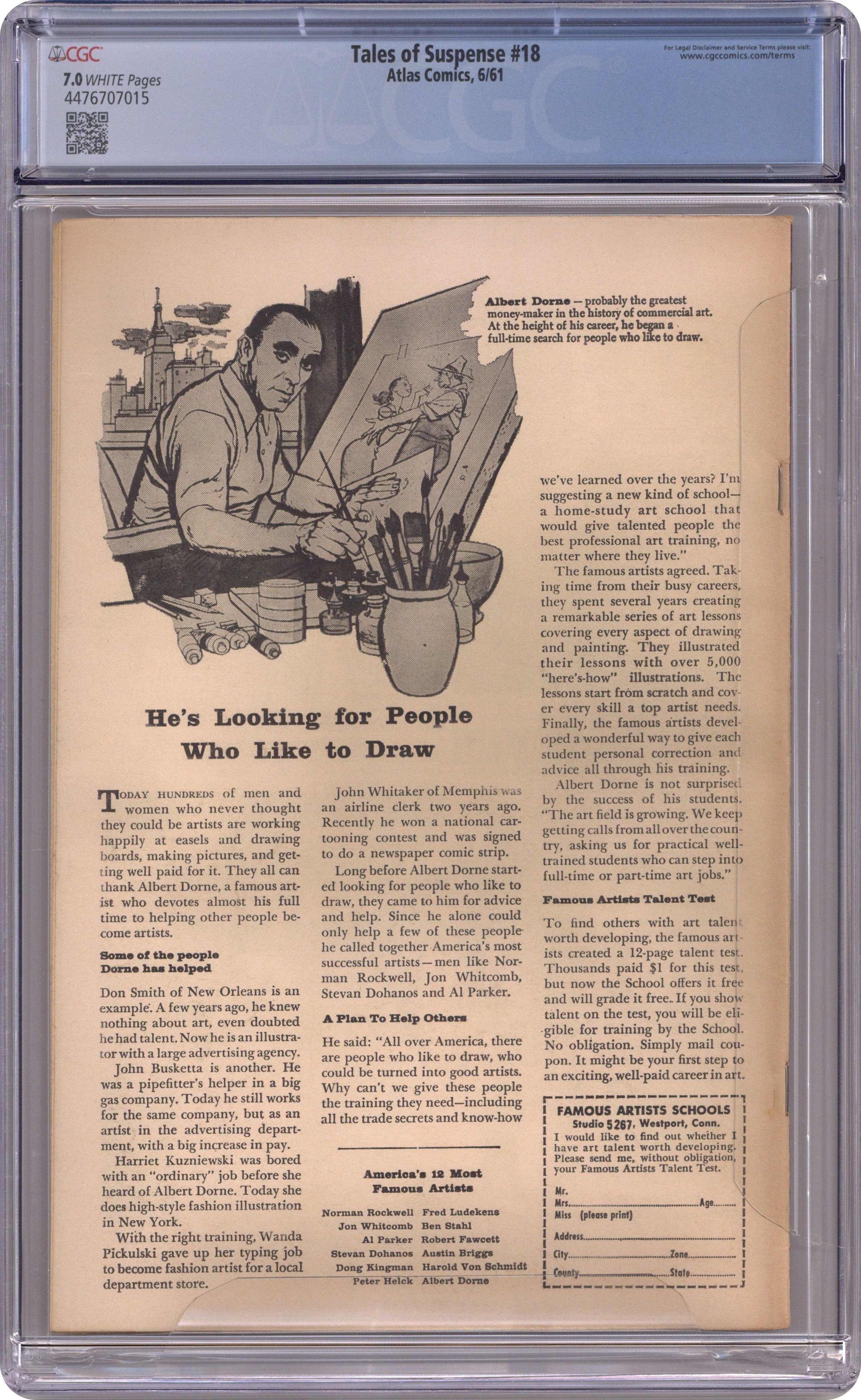 Tags: Marvel Legacy Numbering: Captain America (part 18), Marvel Legacy Numbering: Tales of Suspense (part 18)Tales of Suspense (1959) 18 CGC 7.0