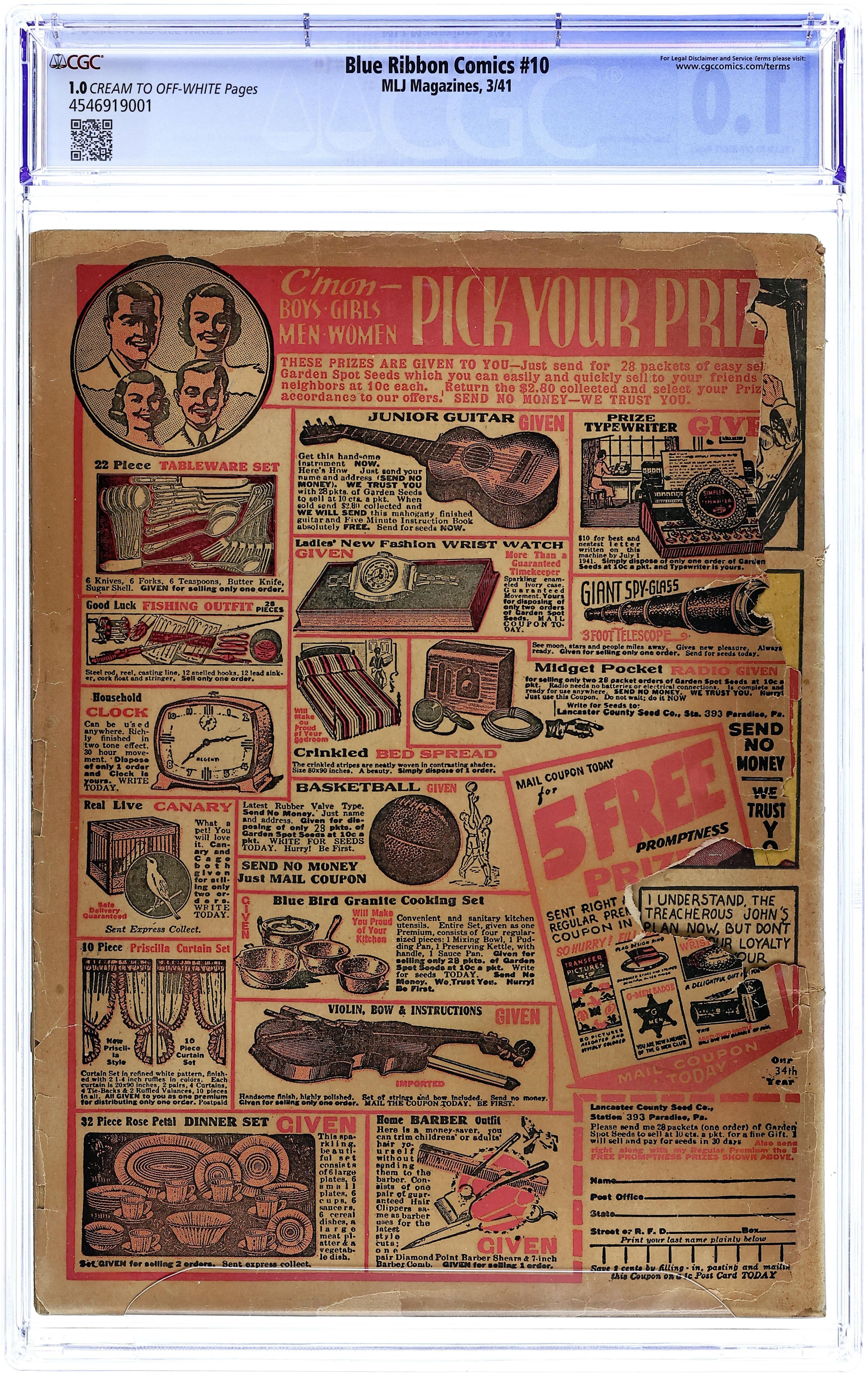 Published Mar 1941 by MLJ Magazines.Blue Ribbon Comics (1939 MLJ) 10 CGC 1.0