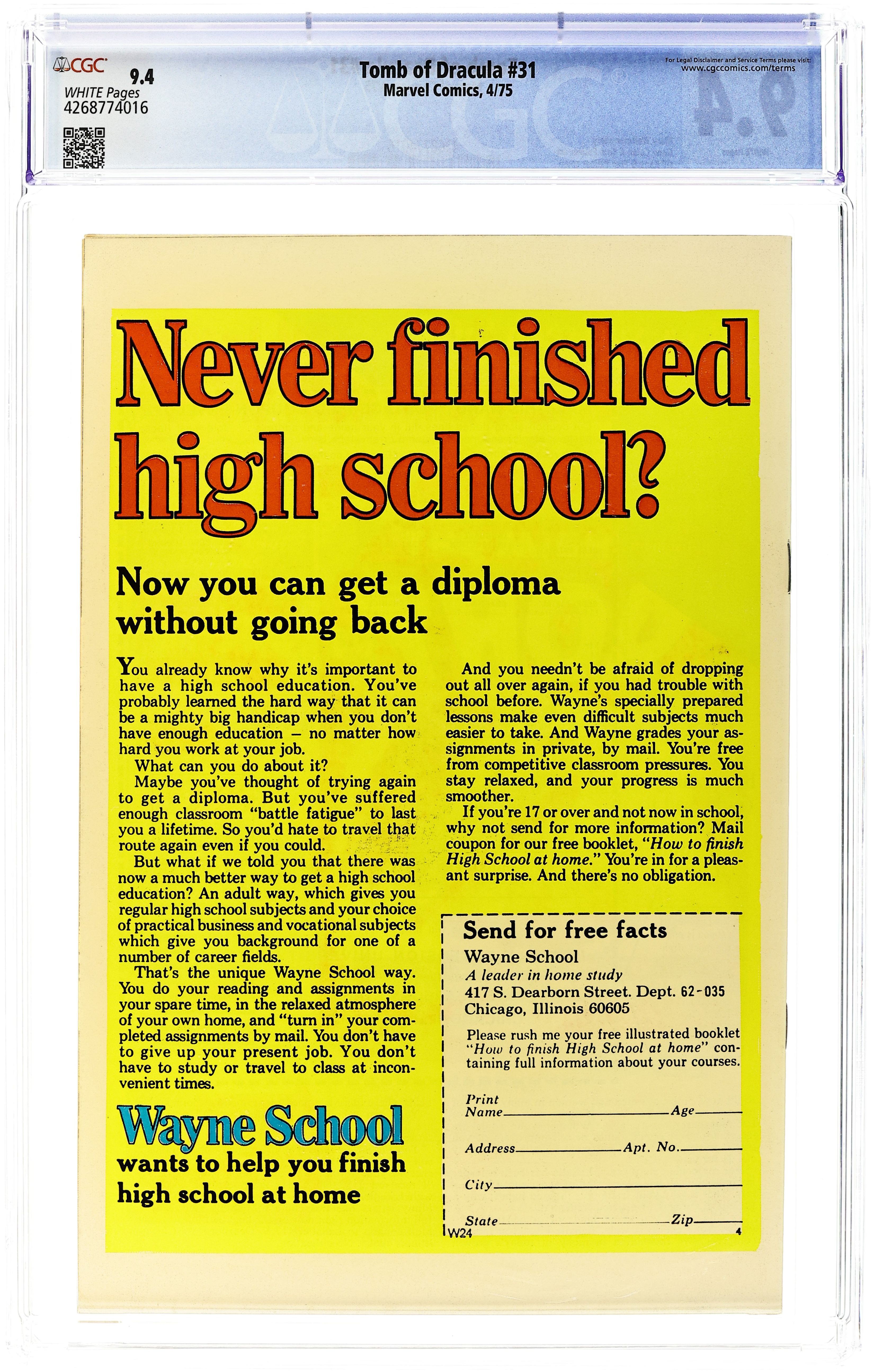 Tomb of Dracula (1972 1st Series) 31 CGC 9.4