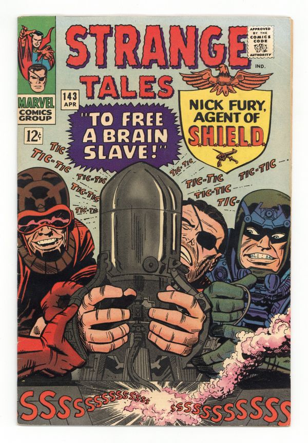 Ended May 7 2025 Winning Bid $27 Cover pencils by Jack Kirby, inks by Mike Esposito. Nick Fury stars in "To Free a Brain Slave," script by Stan Lee and Jack Kirby (co-plot), pencils by Jack Kirby (layouts) and Howard Purcell, inks by Mike Esposito (as M. Demeo); SHIELD HQ is taken over by Mentallo & The Fixer who hold Fury prisoner; Tony Stark takes command of the combat unit, preparing his Neutralizer while the ESP Division is unable to pick up Fury's thoughts; Meanwhile the villains attach a miniature H-Bomb to Fury's wrists and remove the mind-control mask; Fury is able to send a signal to the ESP team allowing SHIELD to retaliate and Stark's Neutralizer dissolves the H-Bomb. "With None Beside Me!", script by Steve Ditko (plot) and Roy Thomas (dialogue), art by Steve Ditko; Strange hides his bound body in a rooftop water tank, as The Demon & his men search for him; At their HQ, Strange retrieves his Cloak Of Levitation, and uses it to capture one of Mordo's men; But his body has been found by the witch; The complex cat-and-mouse game continues until Strange finally regains control of his body and Amulet, and he hypnotizes Mordo's minions into forgetting all they know of black magic. Statement of Ownership, Management and Circulation; Total copies printed (average in last 12 months): 380992. Total copies printed (issue nearest to filing date): 455625. Total paid circulation (average in last 12 months): 230285. Total paid circulation (issue nearest to filing date): 299425. 36 pgs., full color. Cover price $0.12. Grade: FN- 5.5 explanation of grade Condition: Used (collectible)