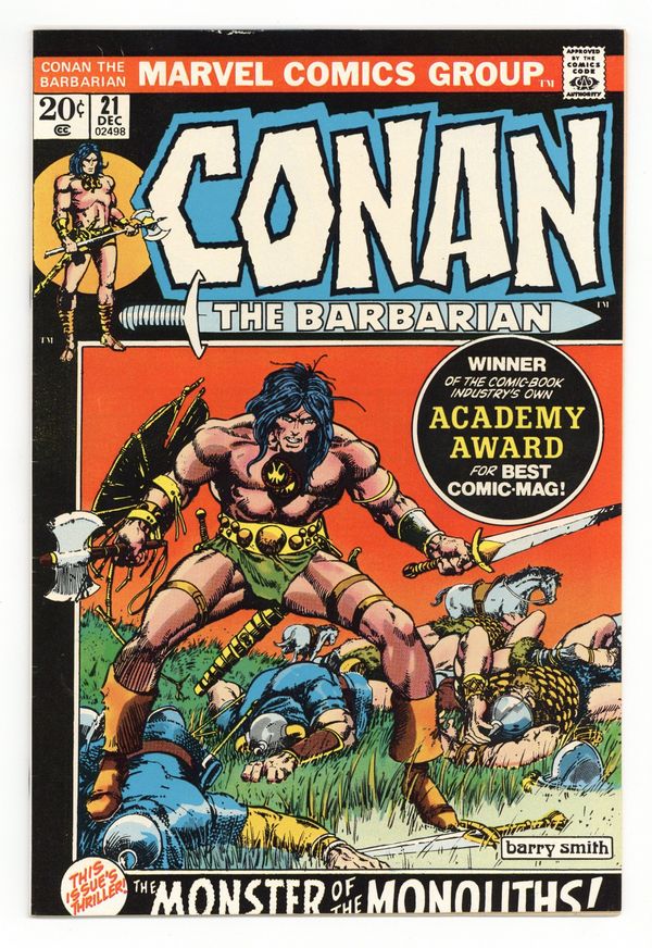 Ended May 17 2025 Winning Bid $23 Cover art by Barry Windsor-Smith. The Monster of the Monoliths, script by Roy Thomas, breakdowns by Barry Windsor-Smith, pencils by Craig Russell and Val Mayerik; inks by Dan Adkins and Sal Buscema; setting: Makkalet; Conan is taken captive in Makkalet when he defects from the Turanian army; Conan joins and is betrayed by Makkalet forces; Conan fights giant toad-god; adapted in part from the story "The Black Stone" by Robert E. Howard. Letters to the editor from Dean Mullaney (Eclipse Comics) and comics artist Duffy Vohland. 36 pgs. Cover price $0.20. Cover price $0.20. Grade: FN/VF 7.0 explanation of grade Condition: Used (collectible)