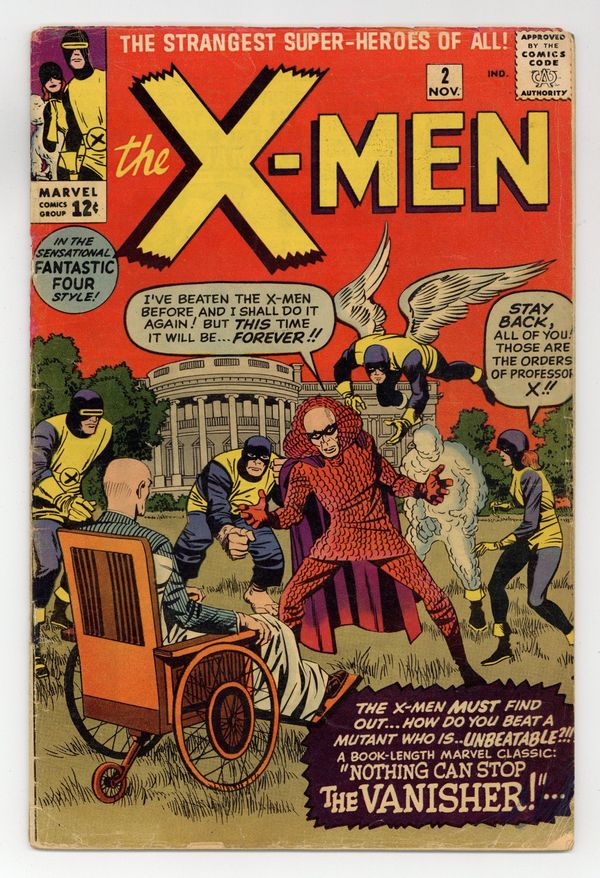 Cover pencils by Jack Kirby, inks by Paul Reinman. No One Can Stop the Vanisher starring Professor X, The Angel, The Beast, Cyclops, Marvel Girl [Jean Grey], Iceman, The Vanisher (first appearance), and Special Agent Fred Duncan, script by Stan Lee, pencils by Jack Kirby, inks by Paul Reinman; The X-Men face a new foe: The Vanisher! 36 pgs. $0.12. Cover price $0.12. Grade: GD/VG 3.0 explanation of grade Condition: Used (collectible)