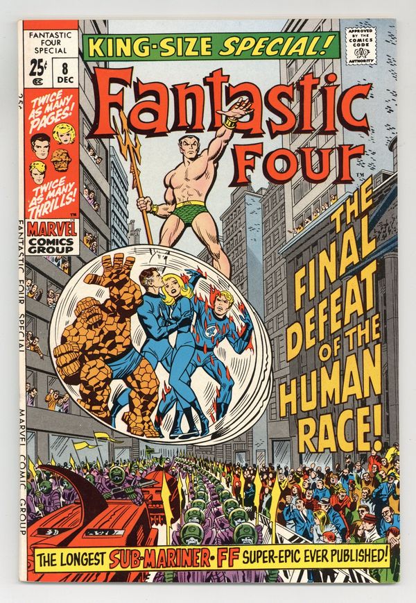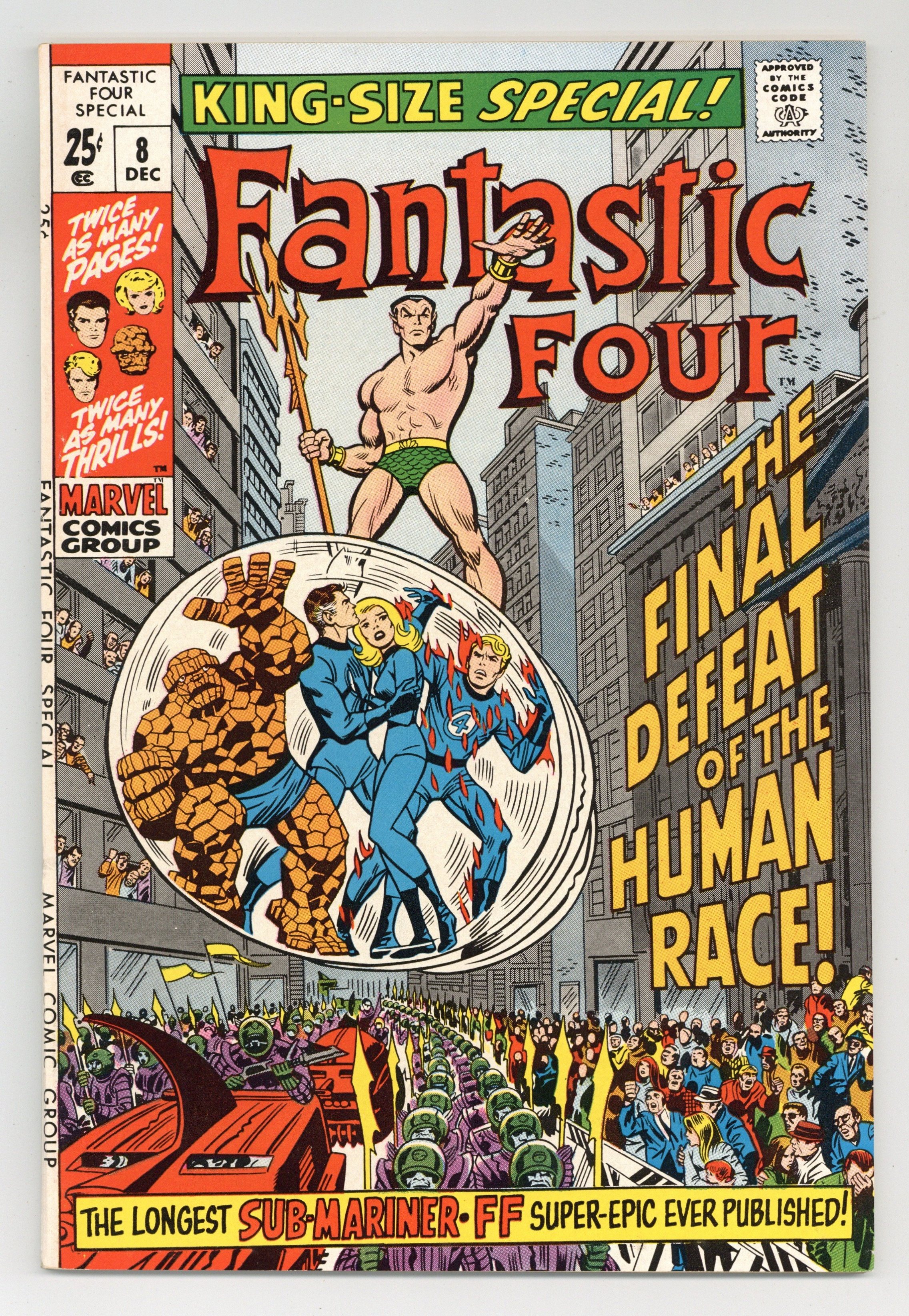 Ended May 6 2025 Winning Bid $183 All Jack Kirby reprints: "Sub-Mariner Versus the Human Race" and gallery pages from FF Annual 1. New John Romita Sr./John Verpoorten cover. 68 pgs. Cover price $0.25. Grade: VF+ 8.5 explanation of grade Condition: Used (collectible)